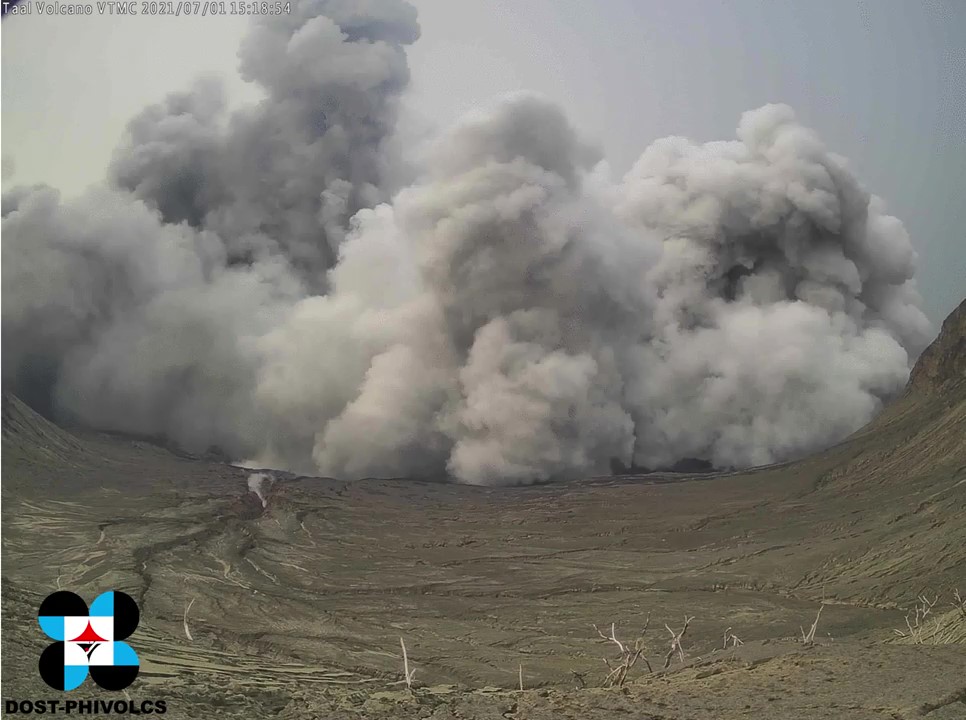 필리핀 지진화산연구소(Phivolcs)에서 2021년 7월 1일을 기점으로 따가이따이 따알 화산(Taal Volcano)의 경보 수준을 3단계로 상향 조정했다. 오늘 오후 3시 16분부터 3시 21분 사이 약 5분 동안 따알화산 분화구 주변에서 수증기마그마성 분출이 관찰됨에 따라 화산 경보 단계를 높인 것이다. 수증기마그마성 분출(Phreatomagmatic eruption)은 마그마가 물과 접촉할 때 물리적 상호작용에 의해 발생하는 분출 활동을 의미한다.