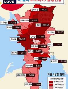 [필리핀 현지 소식] 지도로 보는 코로나19 확진자 현황 - 메트로 마닐라 지역(8월 29일 현재)