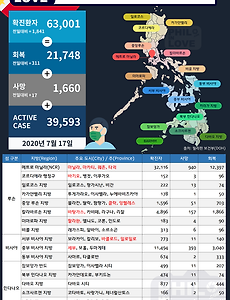 전체보기2895 [필리핀 현지 소식] 지역별 코로나19 확진자 현황 - 필리핀 전체 지역 (7월 21일 현재) ■ 필리핀 코로나19 발생 현황 (7월 21일 현재)- 신종 코로나바이러스 감염증(코로나19)는 2019년 12월 중국 후베이성 우한시에서 시작되었다. 화난수산시장(우한 시장)이 바이러스 발원지로 여겨지고 있다. ① 확진환자(양성) : 70,764명 (전일대비 +1,951)② 사망 : 1,837명 (전일대비 +2) ③ 회복(음성) : 23,281명 (전일대비 +209) * Active Case : 45,646* 누적검사수 : 1,190,937 (7월 20일 현재) ■ 메트로 마닐라 코로나19 확진자 현황 : 총 38,248명 (전일대비 +1,464) ■ 필리핀 코로나19 확진자 지역별 현황 (7월 21일 현재)- 이 자료는 필리핀 보건부의 COVID-19 Tracker 발표를 기준으로 정리되었다. 주(P.. 2020. 7. 21. [필리핀 물가] 마닐라 지역 채소 과일 가격정보 (2020년 7월 현재) 필리핀 채소 & 과일 가격정보 ■ 조사시점 : 2020년 7월 21일 ■ 업태 : 전통시장(도매시장) ■ 지역 : 필리핀 메트로 마닐라, 파사이 시티 ■ 판매점 : 깔띠마시장(Cartimar Market) 청과물 코너 내에 있는 제주상회 - 주소 : stall 10 levenza brgy. 038 Cartimar. Pasay city, Metro Manila - 전화번호 : 02-8832-5248 / 0918-907-6800 / 0917-657-8261 ■ 비고 - 이곳에 기재된 가격정보는 특정 시점에 조사된 가격이라 구매 시기, 판매 지역, 산지, 가공법 등에 따라 가격 차이가 날 수 있다. - 채소는 잎채소(엽채류), 뿌리채소(근채류), 열매채소(과채류)로 구분된다. 채소류 중에서도 열매가 과일처럼 .. 2020. 7. 21. [주필리핀 대한민국 대사관] 한국 입국 외국인 대상, 코로나19 PCR 음성확인서 발급 지정 병원 목록 최근 필리핀발 항공기에 탑승하여 한국에 입국한 입국자 중 코로나 확진 사례가 다수 발생하고 있다는 이야기가 들리고 있는 와중에 대한민국 정부에서 외국인 해외 입국자 관리를 강화한다는 소식이다. 코로나19의 세계적 유행과 맞물려 국내 해외유입 확진자가 급증하는 상황에서 대한민국으로 입국하는 외국인에게 코로나19 음성확인서를 받아 한국으로의 입국수요 자체를 최소화하겠다는 것이다. 해외유입 환자로 인한 감염 확산 가능성은 거의 없다고 하지만, 외국인들에 대한 격리와 치료 부담을 염려하지 않을 수 없다. 하지만 코로나19 음성확인서를 받게 되면 치료를 목적으로 입국하는 외국인을 막을 수 있다. 따라서 앞으로 필리핀에서 출발하여 한국에 도착하는 모든 외국인은 항공기 출발일 기준 48시간 이내에 발급된 코로나19 .. 2020. 7. 21. [필리핀 현지 소식] 지역별 코로나19 확진자 현황 - 필리핀 전체 지역 (7월 20일 현재) ■ 필리핀 코로나19 발생 현황 (7월 20일 현재)- 신종 코로나바이러스 감염증(코로나19)는 2019년 12월 중국 후베이성 우한시에서 시작되었다. 화난수산시장(우한 시장)이 바이러스 발원지로 여겨지고 있다. ① 확진환자(양성) : 68,898명 (전일대비 +1,521)② 사망 : 1,835명 (전일대비 +4) ③ 회복(음성) : 23,072명 (전일대비 +607) * Active Case : 43,991* 누적검사수 : 1,168,965 (7월 19일 현재) ■ 메트로 마닐라 코로나19 확진자 현황 : 총 36,826명 (전일대비 +1,237) ■ 필리핀 코로나19 확진자 지역별 현황 (7월 20일 현재)- 이 자료는 필리핀 보건부의 COVID-19 Tracker 발표를 기준으로 정리되었다. 주(P.. 2020. 7. 20. [필리핀 현지 소식] 지역별 코로나19 확진자 현황 - 필리핀 전체 지역 (7월 19일 현재) ■ 필리핀 코로나19 발생 현황 (7월 19일 현재)- 신종 코로나바이러스 감염증(코로나19)는 2019년 12월 중국 후베이성 우한시에서 시작되었다. 화난수산시장(우한 시장)이 바이러스 발원지로 여겨지고 있다. ① 확진환자(양성) : 67,456명 (전일대비 +2,241)② 사망 : 1,831명 (전일대비 +58) ③ 회복(음성) : 22,465명 (전일대비 +398)* Active Case : 43,160* 누적검사수 : 1,117,629 (7월 17일 현재) ■ 메트로 마닐라 코로나19 확진자 현황 : 총 35,572명 (전일대비 +1,625) ■ 필리핀 코로나19 확진자 지역별 현황 (7월 19일 현재)- 이 자료는 필리핀 보건부의 COVID-19 Tracker 발표를 기준으로 정리되었다. 주(P.. 2020. 7. 19. [필리핀 현지 소식] 지역별 코로나19 확진자 현황 - 필리핀 전체 지역 (7월 18일 현재) ■ 필리핀 코로나19 발생 현황 (7월 18일 현재)- 신종 코로나바이러스 감염증(코로나19)는 2019년 12월 중국 후베이성 우한시에서 시작되었다. 화난수산시장(우한 시장)이 바이러스 발원지로 여겨지고 있다. ① 확진환자(양성) : 65,304명 (전일대비 +2,357)② 사망 : 1,773명 (전일대비 +113) ③ 회복(음성) : 22,067명 (전일대비 +321)* Active Case : 41,464* 누적검사수 : 1,090,877 (7월 16일 현재) ■ 메트로 마닐라 코로나19 확진자 현황 : 총 33,962명 (전일대비 +1,824) ■ 필리핀 코로나19 확진자 지역별 현황 (7월 18일 현재)- 이 자료는 필리핀 보건부의 COVID-19 Tracker 발표를 기준으로 정리되었다. 주(.. 2020. 7. 18. [필리핀 마닐라] Chill Top : Roofdeck Restobar + Family KTV (노래방 가격) Chill Top : Roofdeck Restobar + Family KTV (Chill Top Gil Puyat Taft) ■ 전화번호 : (02) 725 5021■ 주소 : #2015 Sen. Gil J. Puyat Ave, EXTENSION, Pasay, 1012 Metro Manila ■ 위치 : 필리핀 마닐라. 파사이 Padi's Point [필리핀 마닐라] Chill Top : Roofdeck Restobar + Family KTV (노래방 가격) - Copyright 2020. 콘텐츠 스튜디오 필인러브 all rights reserved - ※ 저작권에 관