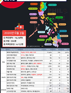 전체보기2895 [필리핀 현지 소식] 지도로 보는 코로나19 확진자 현황 - 필리핀 전체 지역 (6월 3일 현재) ■ 필리핀 코로나19 발생 현황 (6월 3일 현재)- 신종 코로나바이러스 감염증(코로나19)는 2019년 12월 중국 후베이성 우한시에서 시작되었다. 화난수산시장(우한 시장)이 바이러스 발원지로 여겨지고 있다. ① 확진환자(양성) : 19,748명 (전일대비 +751)② 사망 : 974명 (전일대비 +8) ③ 회복(음성) : 4,153명 (전일대비 +90) * 누적검사수 : 378,296 (6월 2일 현재) ■ 메트로 마닐라 코로나19 확진자 현황 : 총 11,429명 (전일대비 +241) 필리핀 보건부에서 운영하는 COVID-19 Tracker 사이트는 사이트 이전을 준비 중이라는 이유로 자료 상세 내용에 대한 업데이트를 하지 않고 있다. 따라서 지역별 코로나19 확진자 발생 현황에 대한 자세한 확인이.. 2020. 6. 3. [필리핀 대중교통] 메트로 마닐라 만달루용, 트라이시클 요금 인상 지난 5월 31일, 메트로 마닐라의 만달루용 시티(City of Mandaluyong)에서는 트라이시클 요금을 인상하는 조례(ORDINANCE NO. 779, S-2020)를 발표했다. 이 조례에 따르면 코로나19 관련 조치(MECQ, GCQ, MGCQ)가 시행되는 동안 트라이시클의 기본요금이 20페소로 인상된다. 사회적 거리두기의 시행으로 예전처럼 승객이 탑승하지 못함을 고려한 조치사항이다. 오토바이를 개조하여 만든 트라이시클(Tricycle)은 필리핀 사람들의 대표적인 대중교통 수단 중 하나이다. 트라이시클은 지프니나 지상철처럼 "요금이 얼마입니다."라고 정확히 안내하기가 어려운데, 요금의 변수가 많기 때문이다. 기본적으로 승객의 수 또는 이동 거리에 따라서도 요금이 결정되지만, 지역에 따라, 혹은 .. 2020. 6. 3. [필리핀 현지 소식] 지도로 보는 코로나19 확진자 현황 - 필리핀 전체 지역 (6월 2일 현재) ■ 필리핀 코로나19 발생 현황 (6월 2일 현재)- 신종 코로나바이러스 감염증(코로나19)는 2019년 12월 중국 후베이성 우한시에서 시작되었다. 화난수산시장(우한 시장)이 바이러스 발원지로 여겨지고 있다. ① 확진환자(양성) : 18,997명 (전일대비 +359)② 사망 : 966명 (전일대비 +6) ③ 회복(음성) : 4,063명 (전일대비 +84) * 누적검사수 : 366,350 (6월 1일 현재) ■ 메트로 마닐라 코로나19 확진자 현황 : 총 11,195명 (전일대비 +89) 필리핀 보건부에서 운영하는 COVID-19 Tracker 사이트는 사이트 이전을 준비 중이라는 이유로 자료 상세 내용에 대한 업데이트를 하지 않고 있다. 따라서 지역별 코로나19 확진자 발생 현황에 대한 자세한 확인이 .. 2020. 6. 2. [필리핀 현지 소식] 코로나19 확진자 18,638명 / 전일대비 552명 증가 (6월 1일 현재) ■ 필리핀 코로나19 발생 현황 (6월 1일 현재)- 신종 코로나바이러스 감염증(코로나19)는 2019년 12월 중국 후베이성 우한시에서 시작되었다. 화난수산시장(우한 시장)이 바이러스 발원지로 여겨지고 있다. - 필리핀 보건부에서 운영하는 COVID-19 Tracker 사이트는 사이트 이전을 준비 중이라는 이유로 5월 30일 이후 자료 업데이트를 하지 않고 있다. 따라서 코로나19 확진자 발생 지역 등에 대한 자세한 확인이 불가능한 상태이다. ① 확진환자(양성) : 18,638명 (전일대비 +552)② 사망 : 960명 (전일대비 +3) ③ 회복(음성) : 3,979명 (전일대비 +70) * 누적검사수 : 340,994 (5월 29일 현재) ▲ 세부시티의 코로나19 확진자 수는 2,319명으로 확인된다.. 2020. 6. 1. [필리핀 현지 소식] 코로나19 확진자 18,086명 / 전일대비 862명 증가 (5월 31일 현재) ■ 필리핀 코로나19 발생 현황 (5월 31일 현재)- 신종 코로나바이러스 감염증(코로나19)는 2019년 12월 중국 후베이성 우한시에서 시작되었다. 화난수산시장(우한 시장)이 바이러스 발원지로 여겨지고 있다. - 필리핀 보건부에서 운영하는 COVID-19 Tracker 사이트는 사이트 이전을 준비 중이라는 이유로 5월 30일 이후 자료 업데이트를 하지 않고 있다. 따라서 코로나19 확진자 발생 지역 등에 대한 자세한 확인이 불가능한 상태이다. ① 확진환자(양성) : 18,086명 (전일대비 +862)② 사망 : 957명 (전일대비 +7) ③ 회복(음성) : 3,909명 (전일대비 +101) * 누적검사수 : 340,994 (5월 29일 현재) ※ 위의 내용은 아래 자료를 참고로 작성되었습니다. · 필.. 2020. 5. 31. [필리핀 현지 소식] 지도로 보는 코로나19 확진자 현황 - 메트로 마닐라 지역 (5월 30일) ■ 필리핀 코로나19 발생 현황 (5월 30일 현재)신종 코로나바이러스 감염증(코로나19)는 2019년 12월 중국 후베이성 우한시에서 시작되었다. 화난수산시장(우한 시장)이 바이러스 발원지로 여겨지고 있다. ① 확진환자(양성) : 17,224명 (전일대비 +590)② 사망 : 950명 (전일대비 +8) ③ 회복(음성) : 3,808명 (전일대비 +88) * 누적검사수 : 340,994 (5월 29일 현재) ■ 메트로 마닐라 코로나19 확진자 현황 : 총 10,870명 (전일대비 +380)※ 지자체 자체 발표 자료의 출처 : 시(City) 또는 구(Municipality)에서 운영하는 페이스북 페이지 지역보건부 발표지자체 자체 발표확진자사망회복확진자퀘존2,2501706651,806마닐라1,22710338.. 2020. 5. 30. [필리핀 현지 소식] 세부시티도 GCQ 적용! GCQ, MGCQ 지역 총정리 (6월 1일부터 적용) 4월 중순에 필리핀에서의 코로나19 검사비와 치료비에 관해 확인해본 뒤 병원비를 감당할 수 없겠다는 결론을 내려야만 했다. 필리핀 정부에서는 