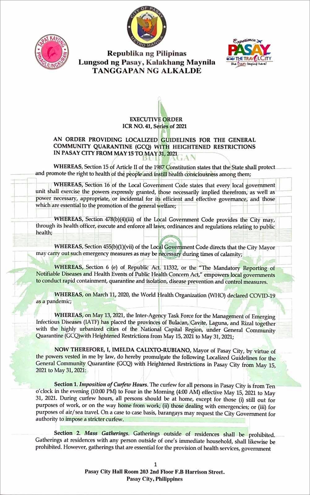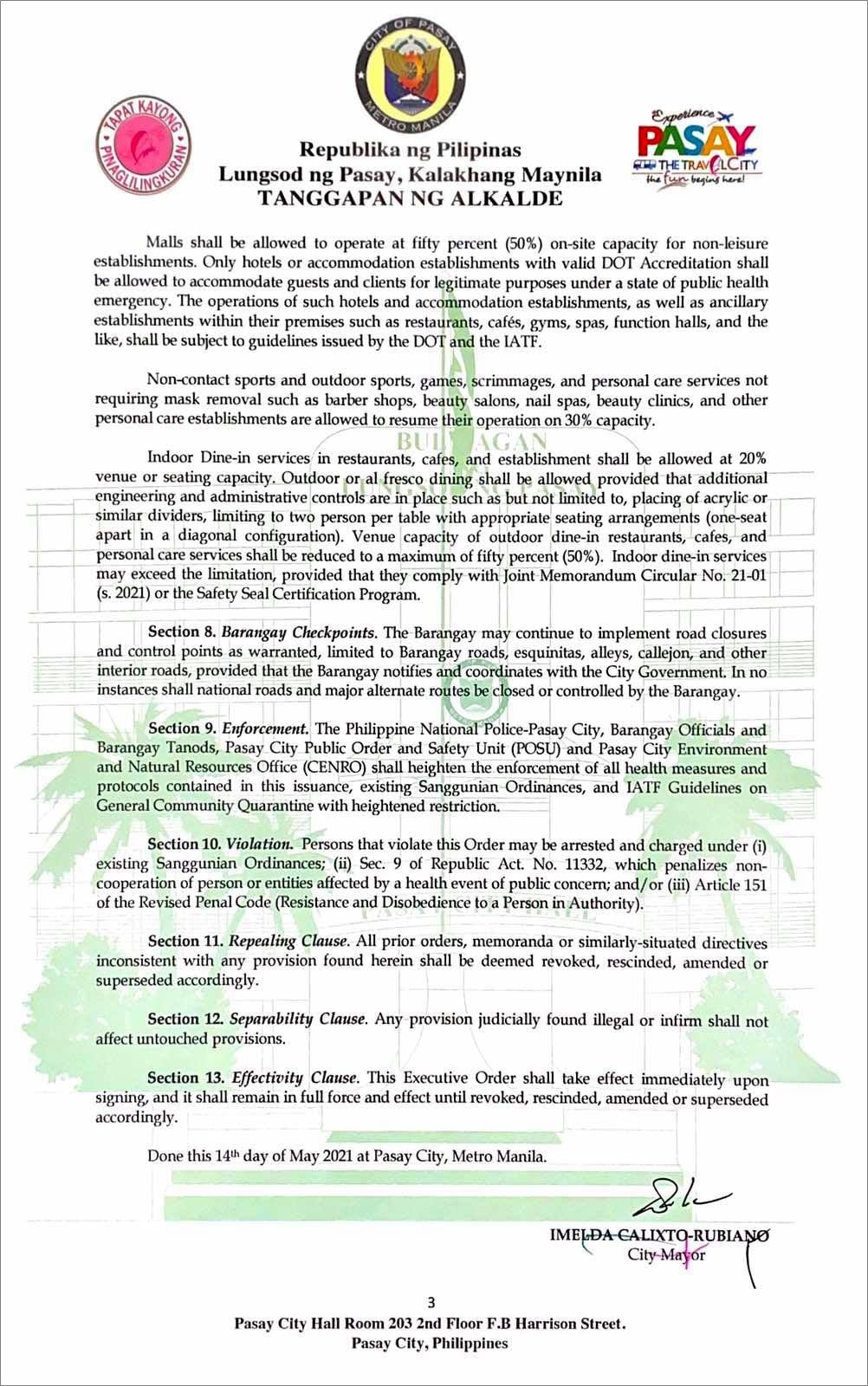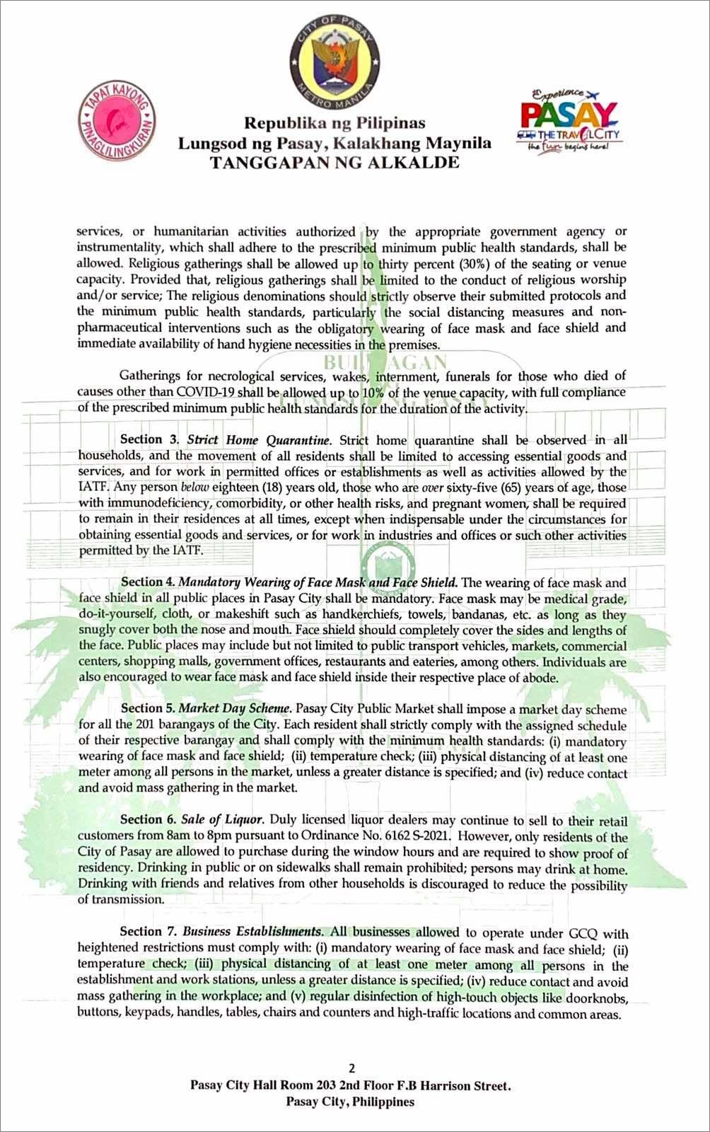 진마트에서 슈퍼 곳곳에 이런저런 안내문을 가득 붙이게 된 것은 필리핀 정부의 시행지침이 수시로 바뀌기 때문이다. 파사이 시티의 지침(Executive Order ICR No. 41)도 봐야 하니 고달프지 않을 수 없다. 지난 5월 15일부터 시작된 가이드라인은 무려 3장에 걸쳐 빼곡한데, 오후 10시부터 오전 4시 사이 통행금지, 대규모 집회 금지 등과 함께 주류 판매에 대한 내용도 적혀 있다. 그러니까 파사이에서는 오전 8시부터 오후 8시까지 파사이 거주민만 술을 살 수 있으며, 집에서 가족들끼리만 음주가 허용된다. 하지만 눈 가리고 아웅 한다고 했다. 단순히 주류 구매 가능 대상과 시간을 제한한다고 하여 코로나19 방역에 큰 효과를 거둘 것 같지는 않다. 파사이에서 스무 걸음 정도 되는 작은 다리 하나만 건너면 마카티인데, 정말 술이 마시고 싶다면 마카티에 가서 사면 간단히 해결될 일이니 말이다.