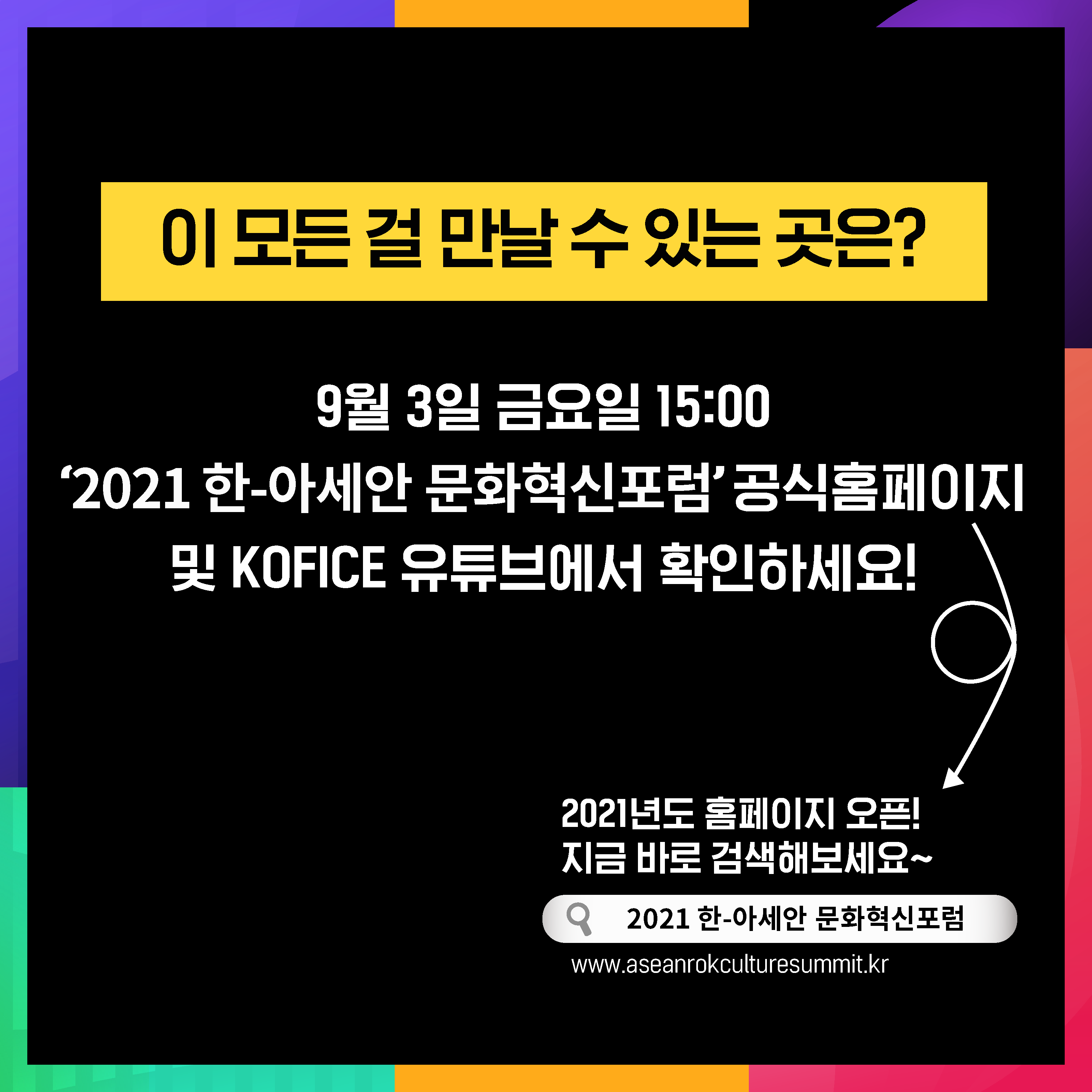 · 2021 한-아세안 문화혁신 포럼 홈페이지 : https://aseanrokculturesummit.kr/