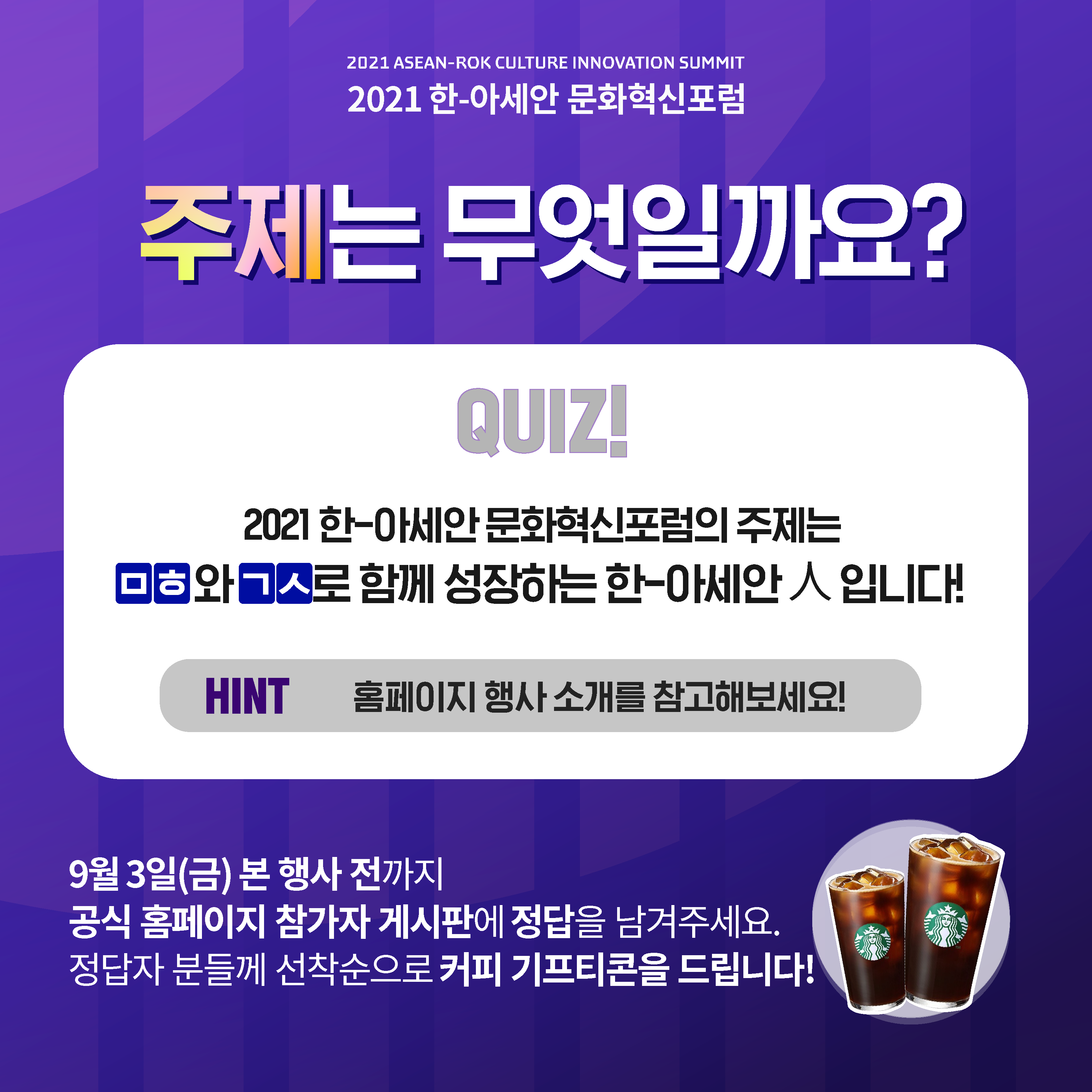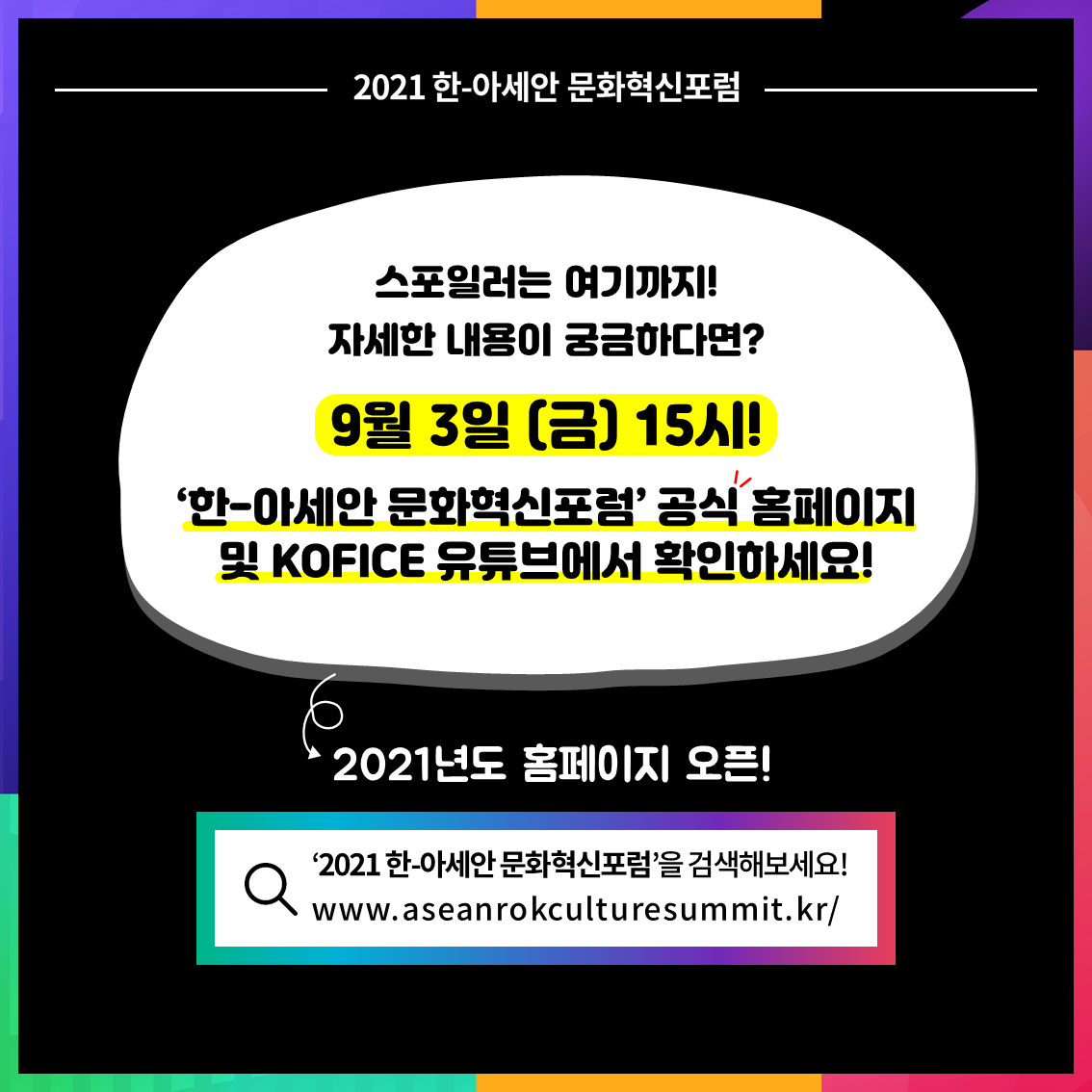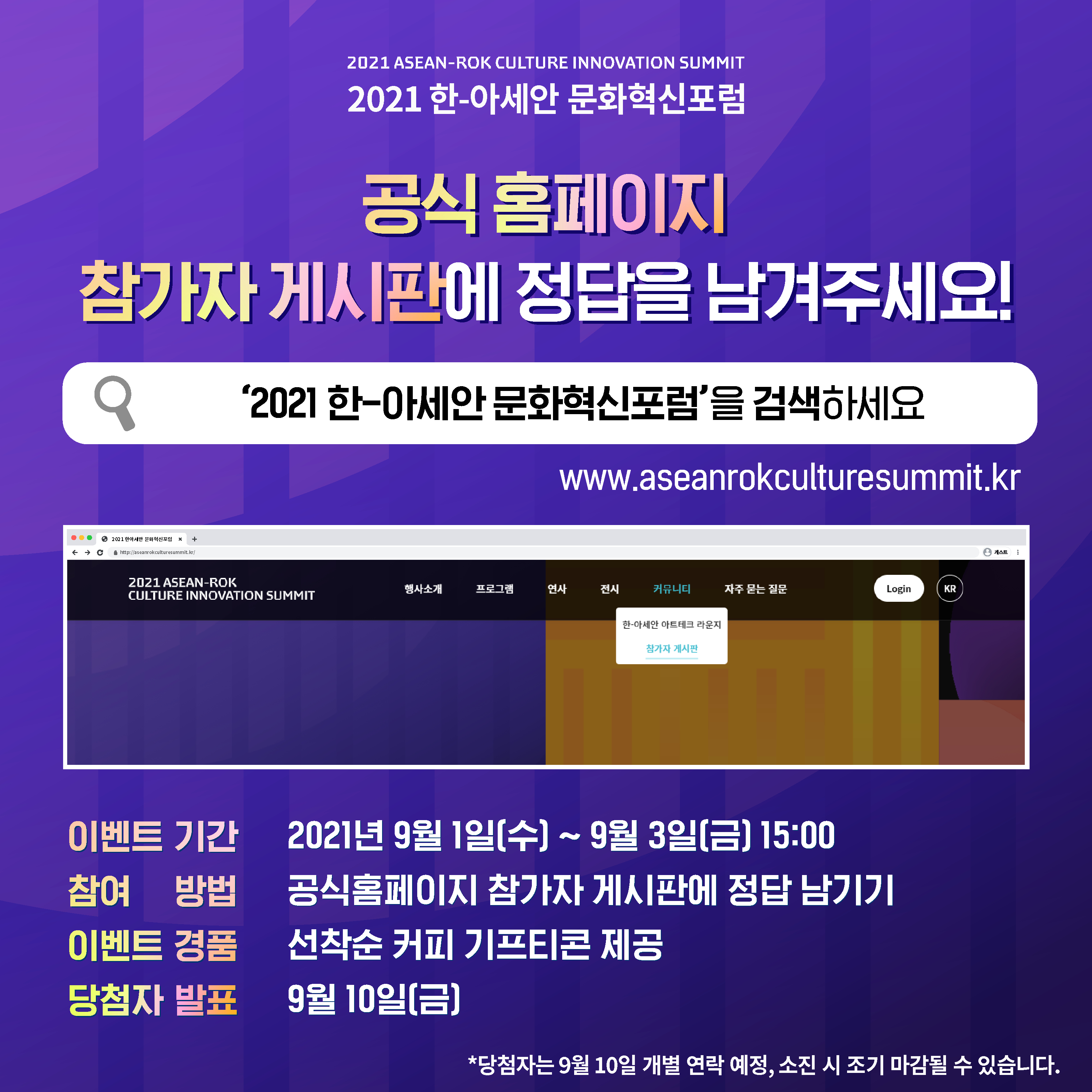 · 2021 한-아세안 문화혁신 포럼 홈페이지 : https://aseanrokculturesummit.kr/