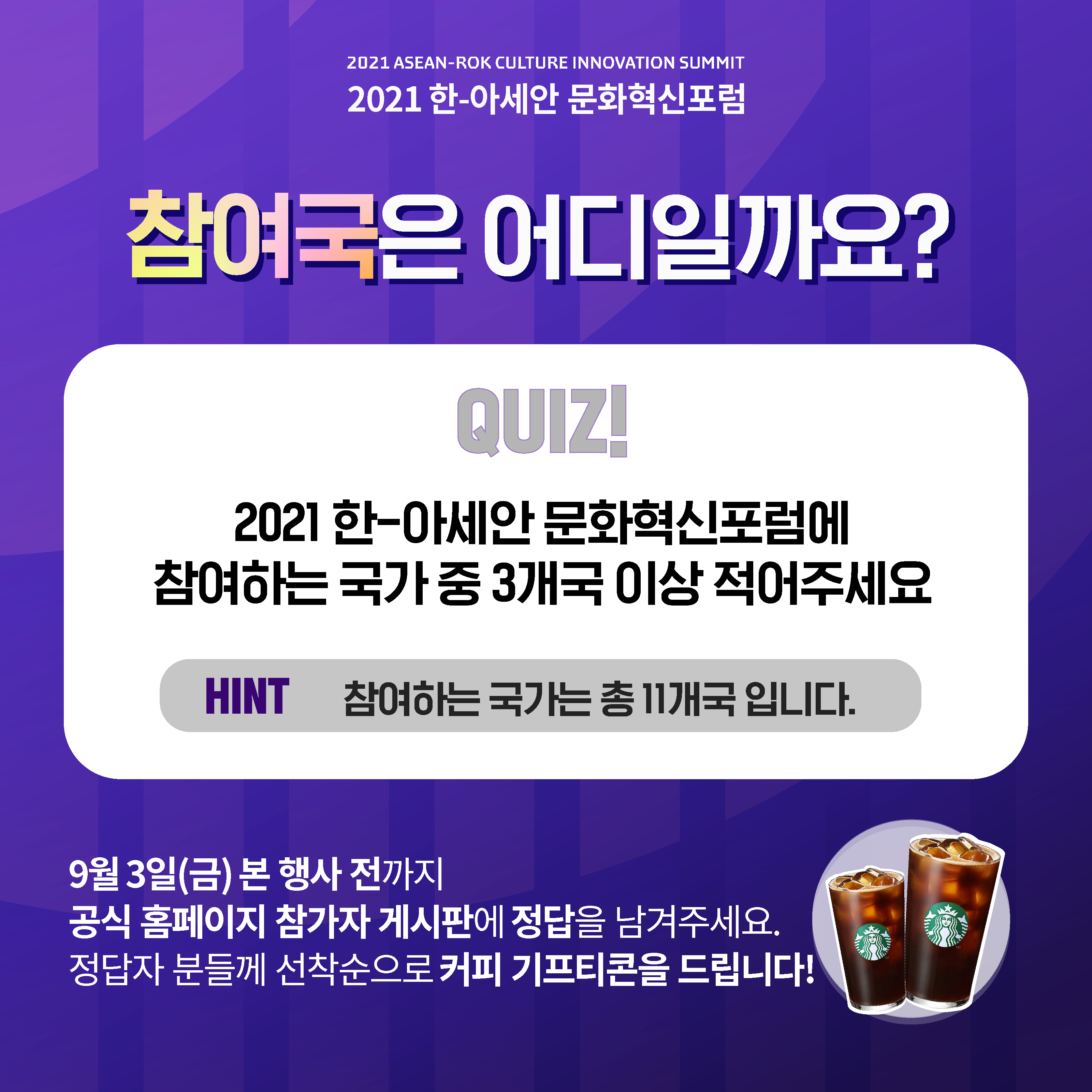 오는 9월 3일, 2021 한-아세안 문화혁신포럼이 개최된다.