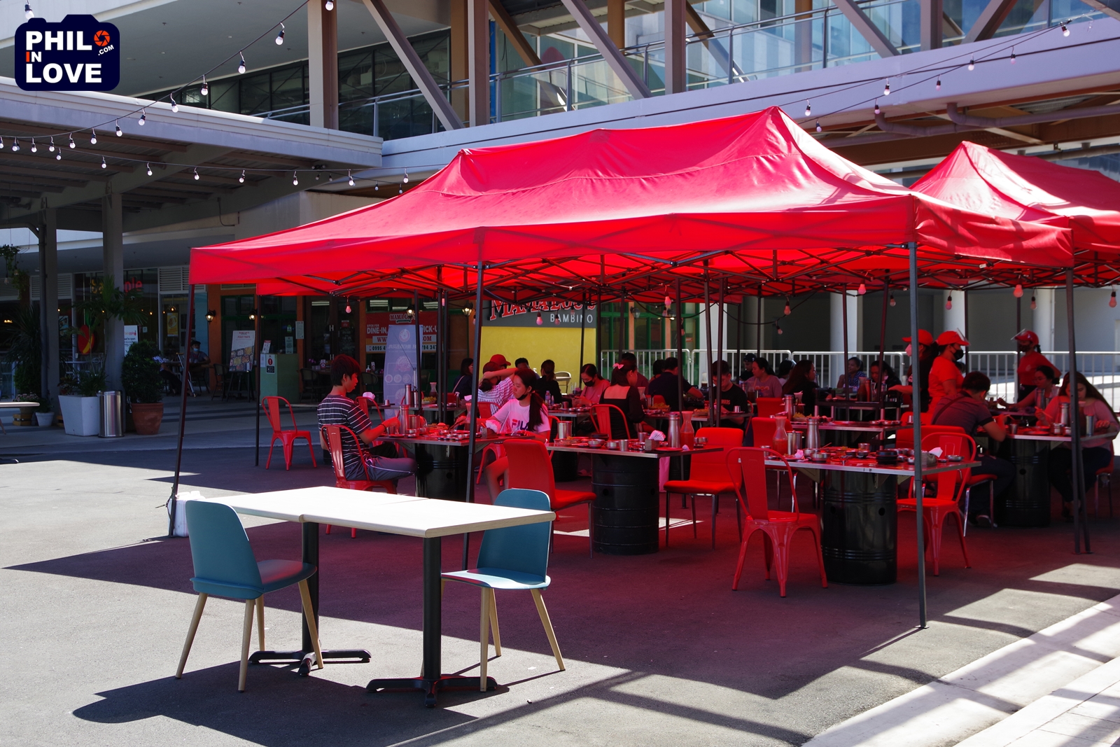 답답하여 쇼핑몰이라도 잠깐 다녀와야 마음이 가라앉을 듯하여 반찬이 필요하다는 핑계로 마카티(Makati City)에 있는 아얄라 서킷 쇼핑몰(Ayala Malls Circuit)에 갔다가 매우 흥미로운 광경을 보았다. 그건 다름 아닌 삼겹살이었다. 숨이 턱턱 막히는 더운 날씨임에도 불구하고 사람들이 야외 테이블에 앉아 삼겹살을 먹고 있었다. 물론 요즘 필리핀에서는 한류 바람이 매우 거세고, 삼겹살은 누가 먹어도 맛있는 음식이지만, 맛있는 것을 먹는다고 격렬한 더위가 느껴지지 않을 리가 없다. 하지만 필리핀 정부에서 식당 안에서의 식사를 금지하고 있으니, 삼겹살라맛 식당에서 궁여지책으로 바깥에 테이블을 놓고 영업을 하는 모양이었다. 쇼핑몰 내 공용 공간에 테이블을 설치하는 일이 쉽지 않았을 터인데, 어떻게든 지금의 상황을 개선해보려는 주인의 의지가 대단하지 않을 수 없다.