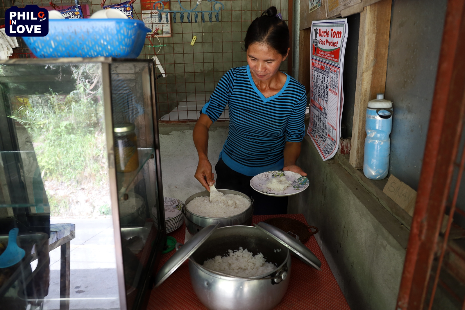 그런데 이 식당, 알고 보니 주방에서 보이는 풍경이 그림이다. 바로 옆에 작은 개울이 있는데 멀리서도 물이 얼마나 깨끗한지 훤히 보인다. 게다가 주인아주머니는 시골 인심이 좋다는 이야기를 저절로 하게 만드는 분이셨다. 밥을 먹게 되었다는 사실 하나만으로도 즐거웠을 터인데, 계란프라이를 좀 해줄 수 있느냐는 부탁에 흔쾌히 가능하다는 답변을 해주신다. 써니사이드업이 좋은지 아니면 오믈렛이 좋은지 묻는 것도 잊지 않는다. 가장 고마운 것은 밥이었다. 주방에서 밥솥을 들고 나오시더니, 찬밥도 있기는 하지만 마침 방금 밥을 하였으니 따뜻한 밥으로 주겠다며 갓 지은 밥을 접시 가득 수북하게 퍼담아 주신다. 마닐라였다면 족히 세 그릇은 되었을 양의 밥은 단돈 10페소. 한국 돈으로 약 250원밖에 하지 않는다. 아자와 함께 이런 곳에 살면 언리미티드 라이스(밥 무제한)가 필요 없겠다는 농담을 하며  배부르게 아침 식사를 끝내고 다시 여행길에 올랐다.