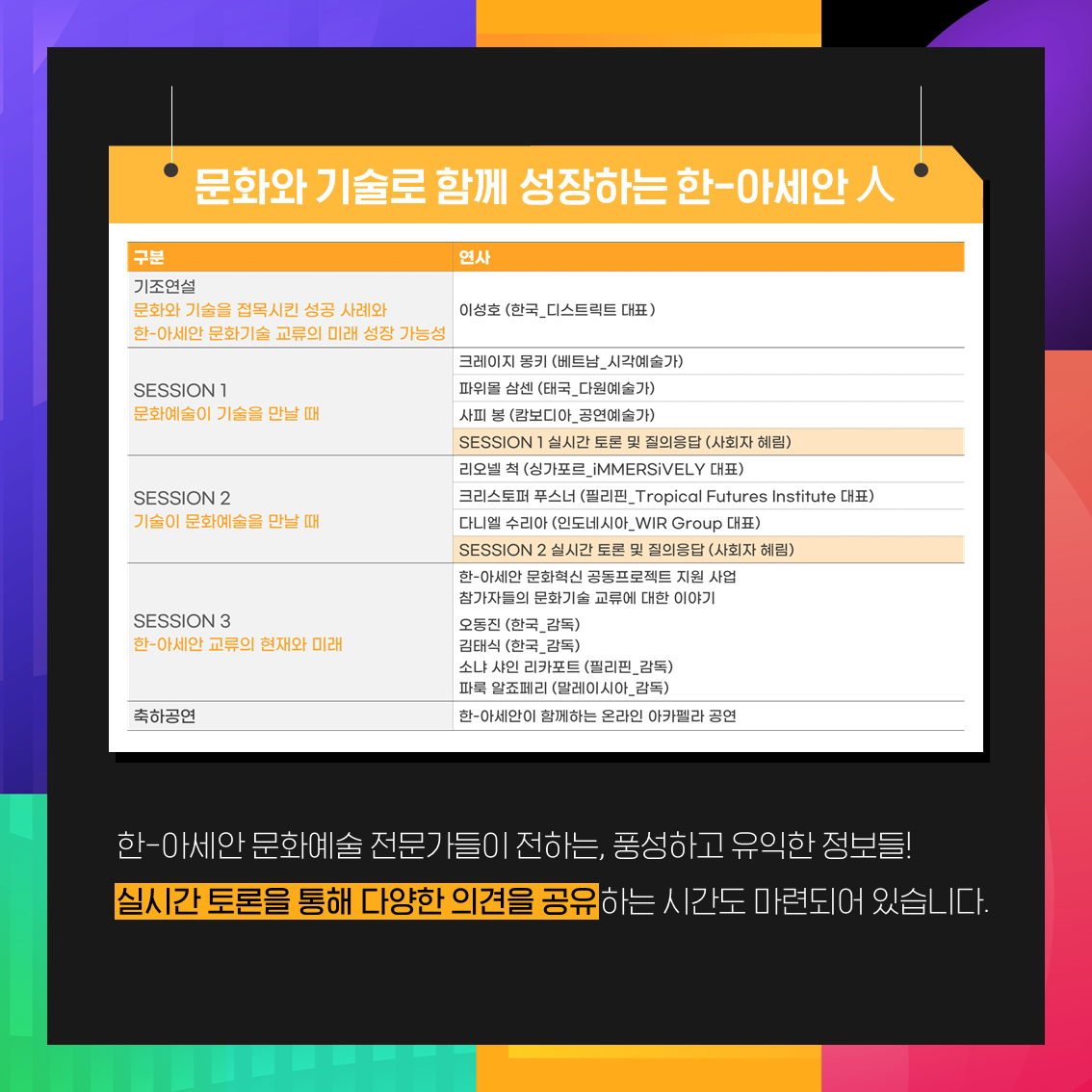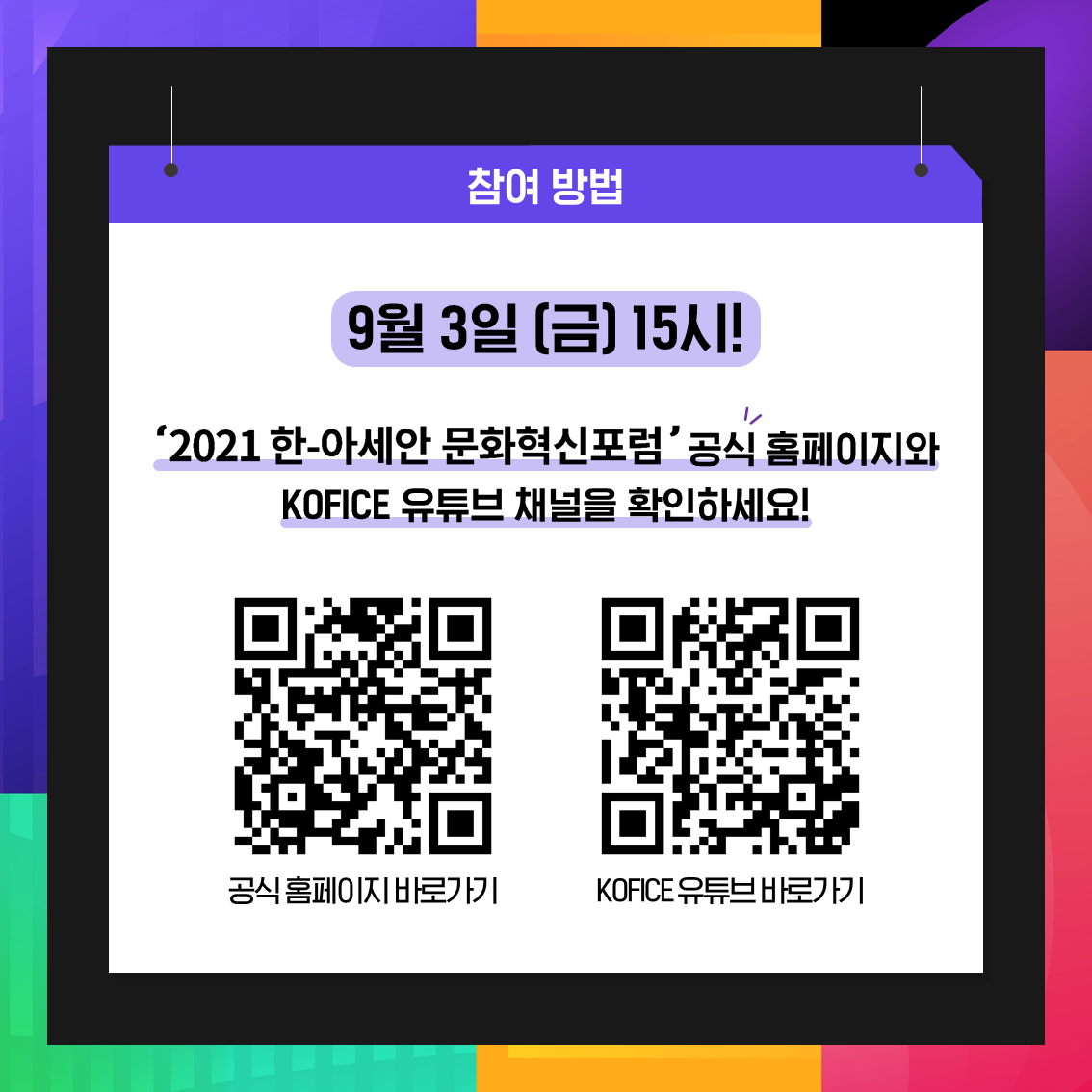 · 참여 : '2021 한-아세안 문화혁신 포럼' 홈페이지 (https://aseanrokculturesummit.kr/)