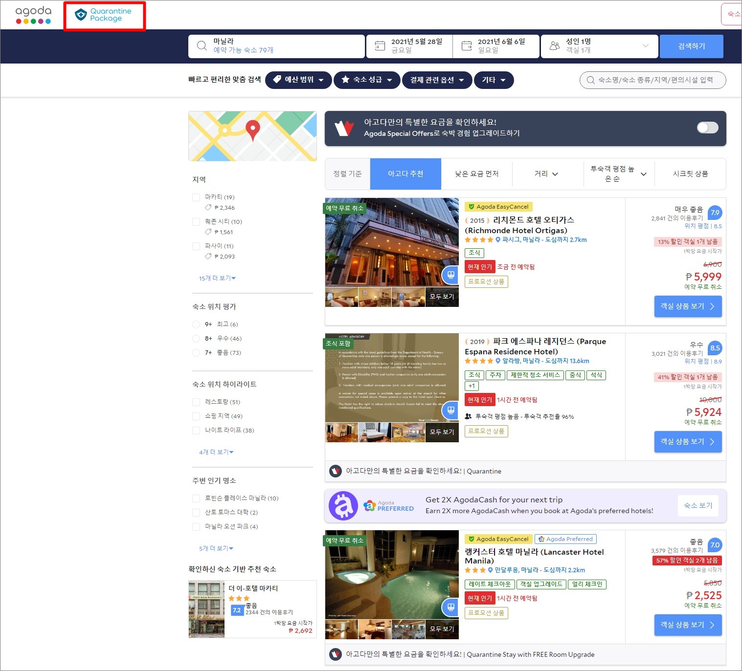 ※ 아고다 사이트 바로 가기 : https://www.agoda.com/ko-kr/quarantineph