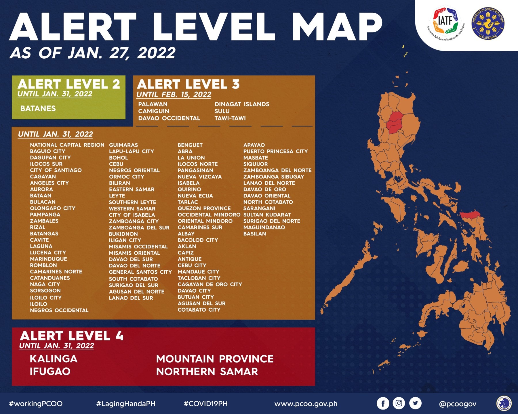 [필리핀 방역 단계] 경보단계시스템 레벨3 적용지역 (2022년 2월)