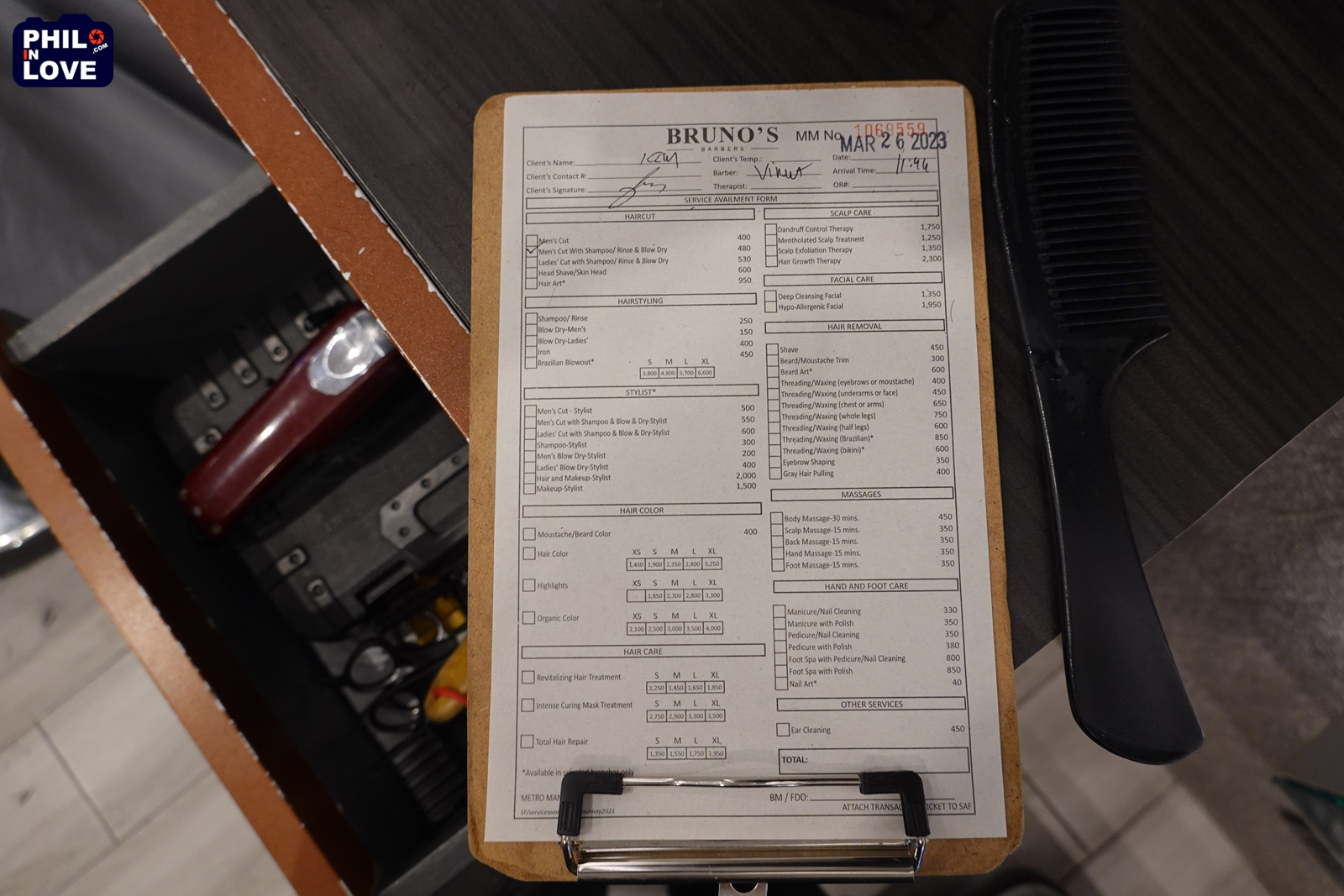 브루노스 바버샵에서는 커트 외 염색, 면도, 매니큐어, 풋스파, 마시지 등도 서비스하고 있는데 풋마사지 가격이 15분에 350페소로 상당히 비싼 편이다. 그리고 바버샵이지만 여성 컷트 서비스도 하고 있다. 여성 헤어컷 서비스 비용은 530페소이며 샴푸 및 드라이가 포함되어 있다.