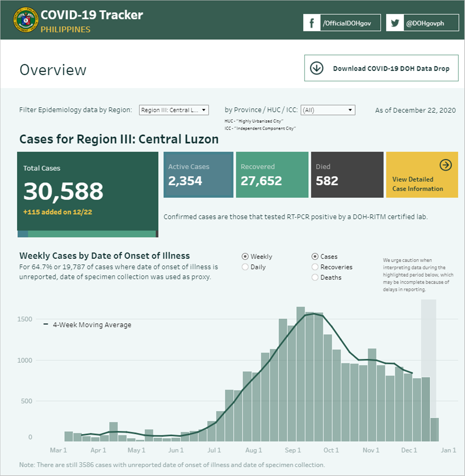 이 자료는 필리핀 보건부의 COVID-19 Tracker 발표를 기준으로 정리되었다. 주(Province) 또는 시(City)에서 발표하는 현황과 차이가 있을 수 있다.