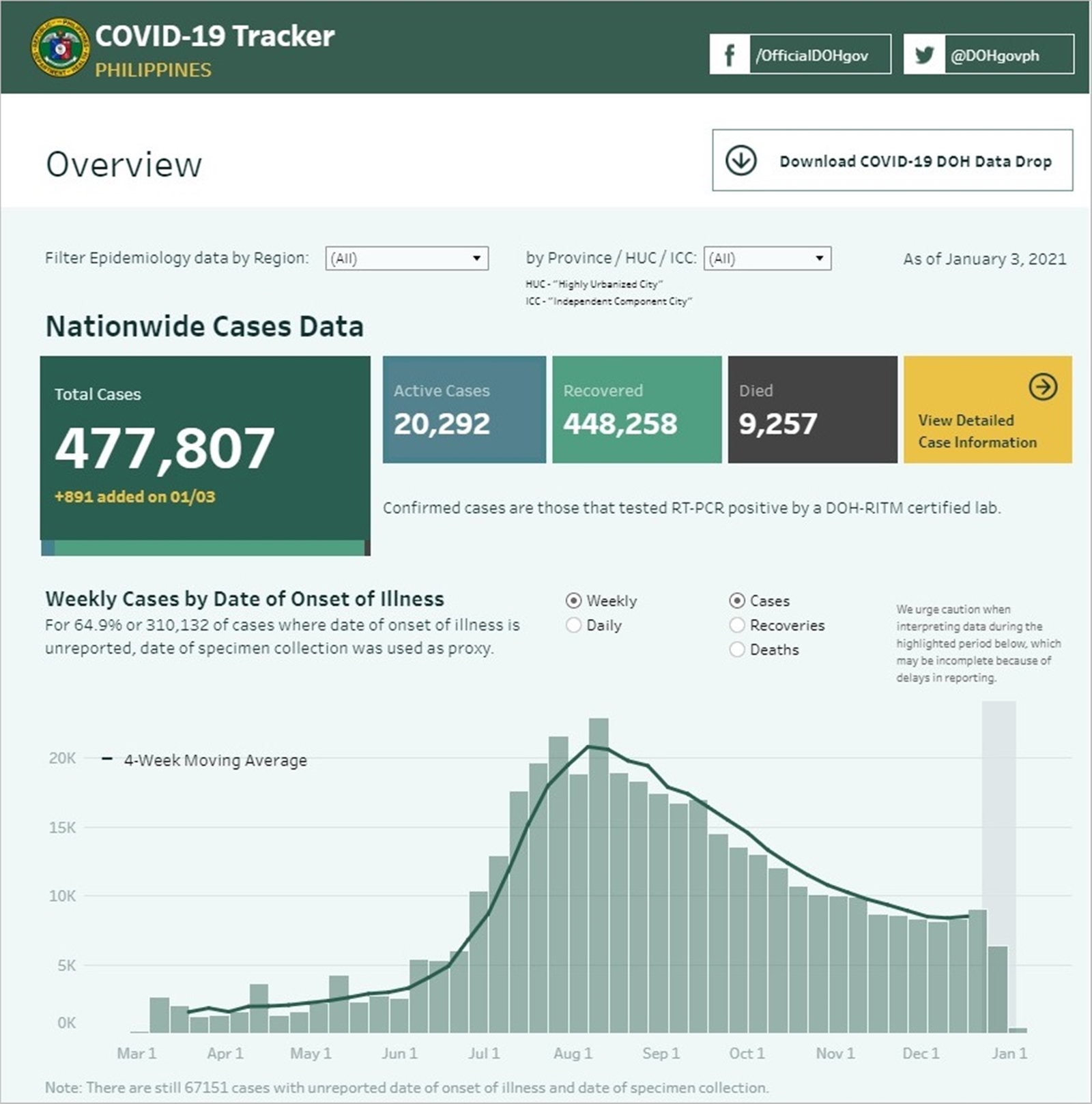 ■ 필리핀 코로나19 발생 현황 (2021년 1월 3일 현재)