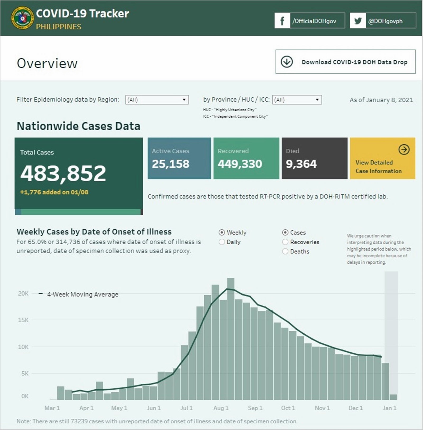 이 자료는 필리핀 보건부의 COVID-19 Tracker 발표를 기준으로 정리되었다. 주(Province) 또는 시(City)에서 발표하는 현황과 차이가 있을 수 있다.