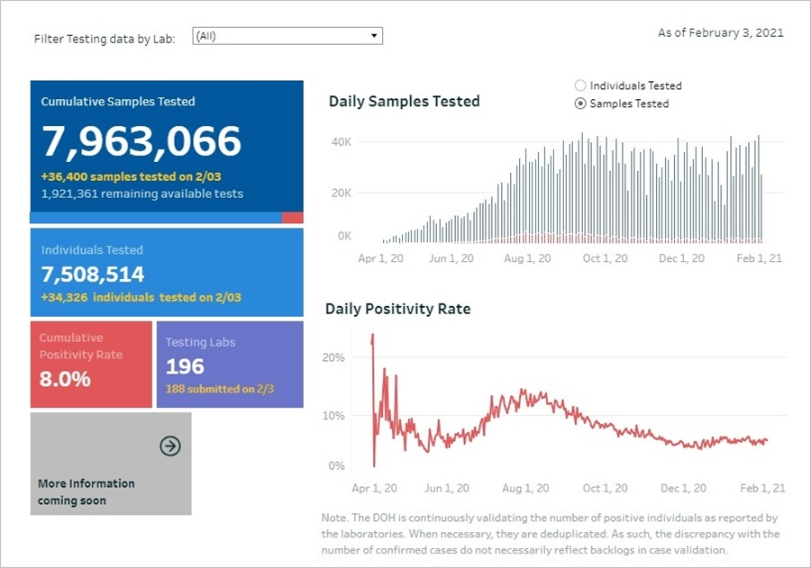 이 자료는 필리핀 보건부의 COVID-19 Tracker 발표를 기준으로 정리되었다. 주(Province) 또는 시(City)에서 발표하는 현황과 차이가 있을 수 있다.