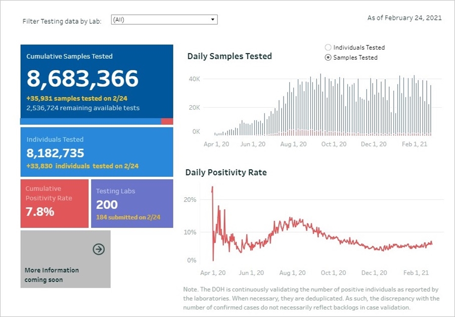 이 자료는 필리핀 보건부의 COVID-19 Tracker 발표를 기준으로 정리되었다. 주(Province) 또는 시(City)에서 발표하는 현황과 차이가 있을 수 있다.