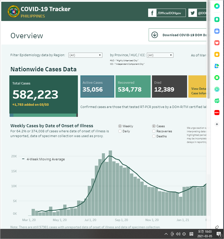 필리핀 보건부(DOH)에서 확진자에 대한 상세 자료를 3월 5일 오후에 업데이트함.