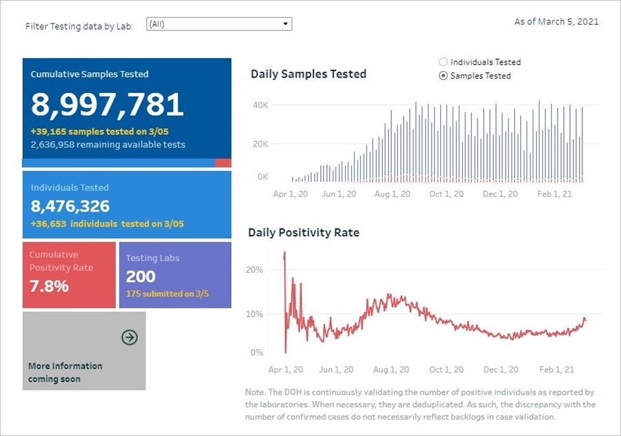 이 자료는 필리핀 보건부의 COVID-19 Tracker 발표를 기준으로 정리되었다. 주(Province) 또는 시(City)에서 발표하는 현황과 차이가 있을 수 있다.