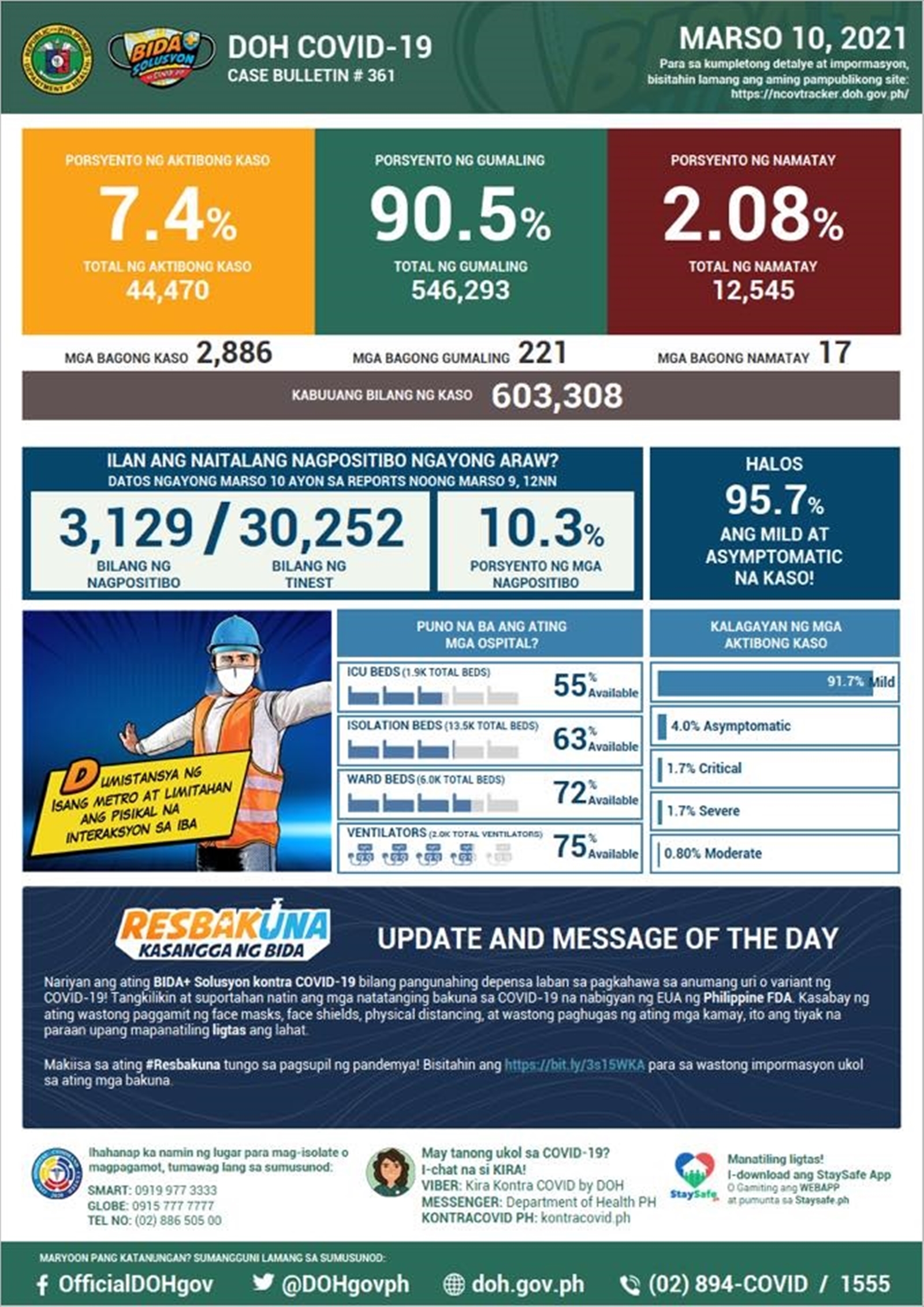 ■ 필리핀 코로나19 발생 현황 (2021년 3월 10일 현재)