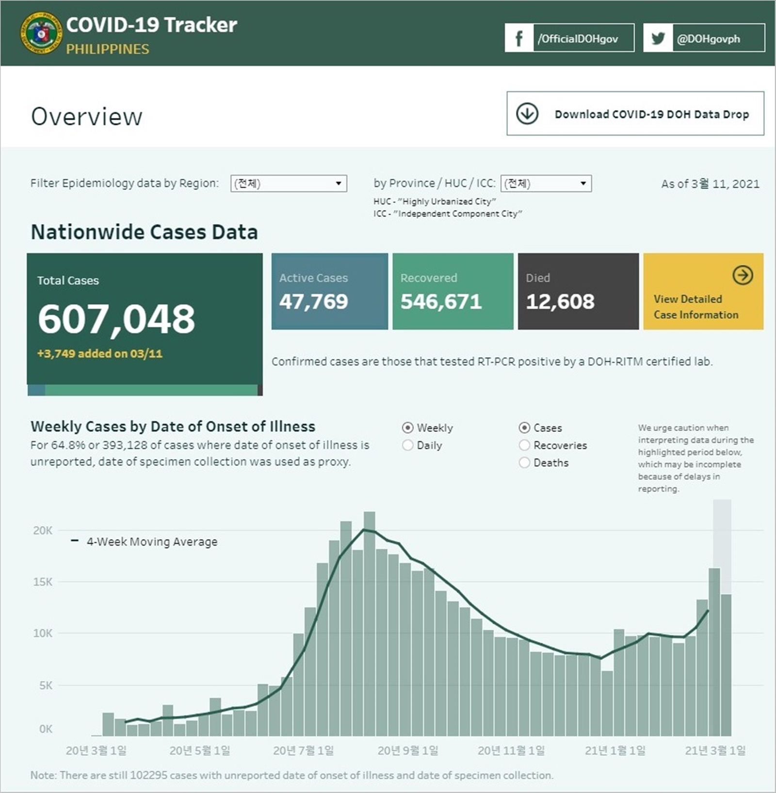 ■ 필리핀 코로나19 발생 현황 (2021년 3월 11일 현재)