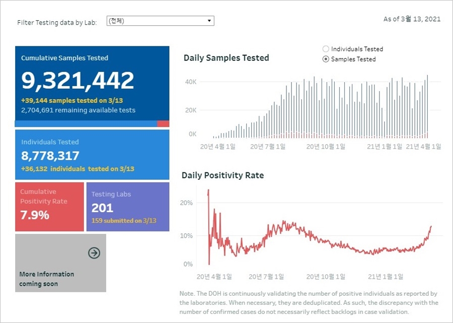 - 누적검사수(cumulative sample tested) : 9,321,442