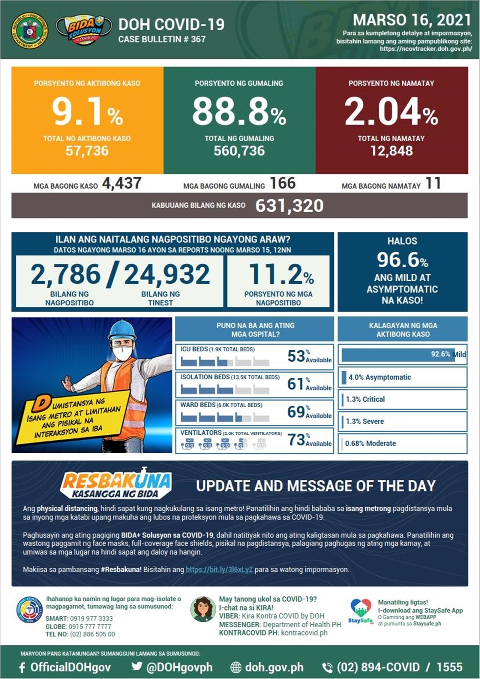 이 자료는 필리핀 보건부의 COVID-19 Tracker 발표를 기준으로 정리되었다. 주(Province) 또는 시(City)에서 발표하는 현황과 차이가 있을 수 있다.