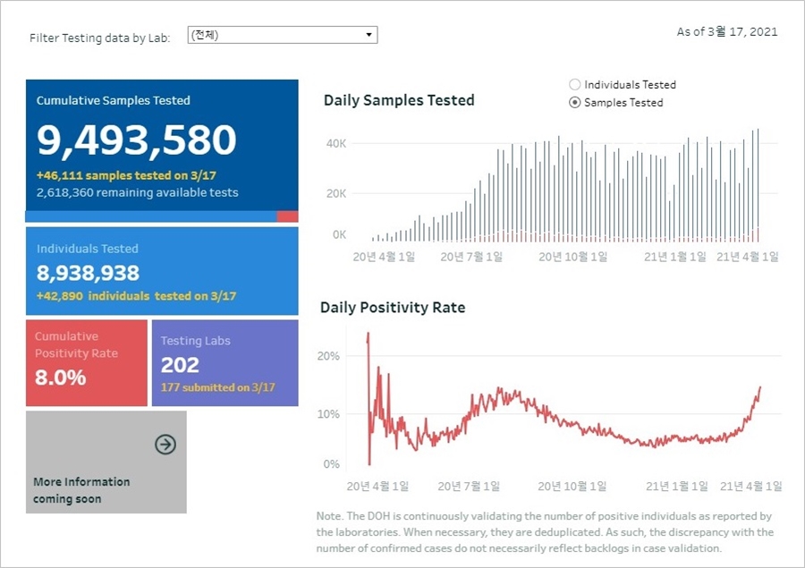 이 자료는 필리핀 보건부의 COVID-19 Tracker 발표를 기준으로 정리되었다. 주(Province) 또는 시(City)에서 발표하는 현황과 차이가 있을 수 있다.