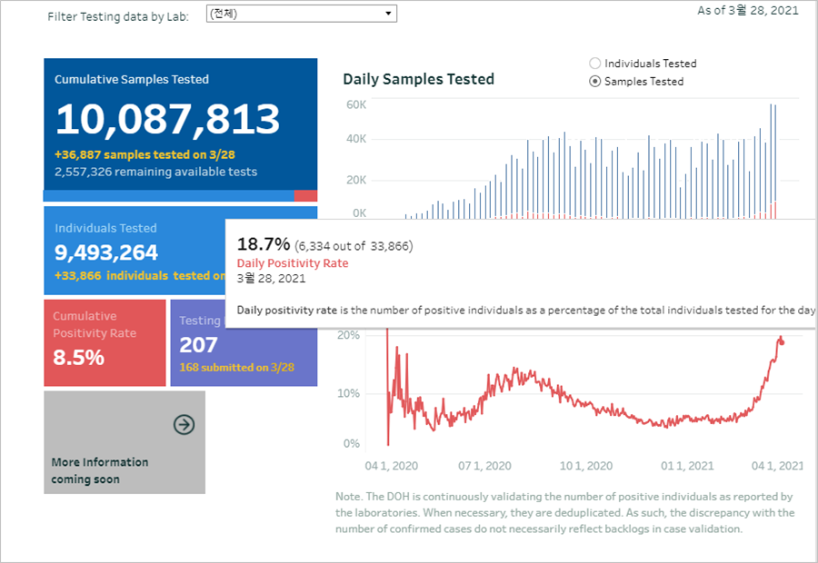 - 누적검사수(cumulative sample tested) : 10,087,813