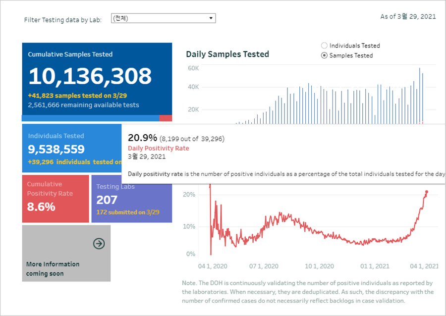- 누적검사수(cumulative sample tested) : 10,136,308