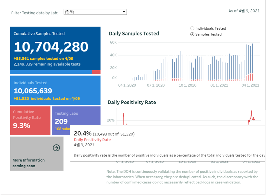 - 누적검사수(cumulative sample tested) : 10,704,280