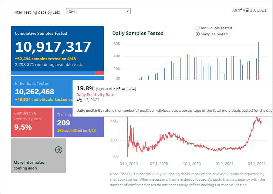 - 누적검사수(cumulative sample tested) : 10,917,317