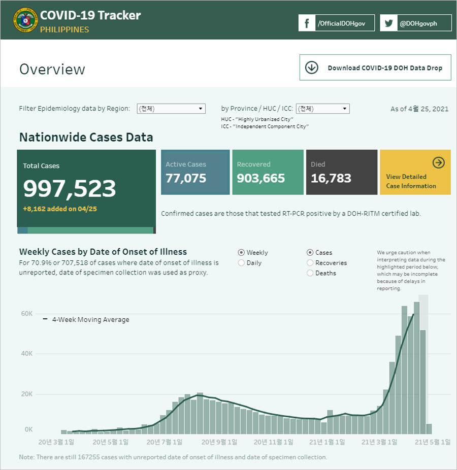 ■ 필리핀 코로나19 발생 현황 (2021년 4월 25일 현재)