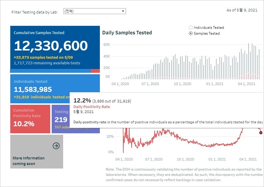- 누적검사수(cumulative sample tested) : 12,330,600