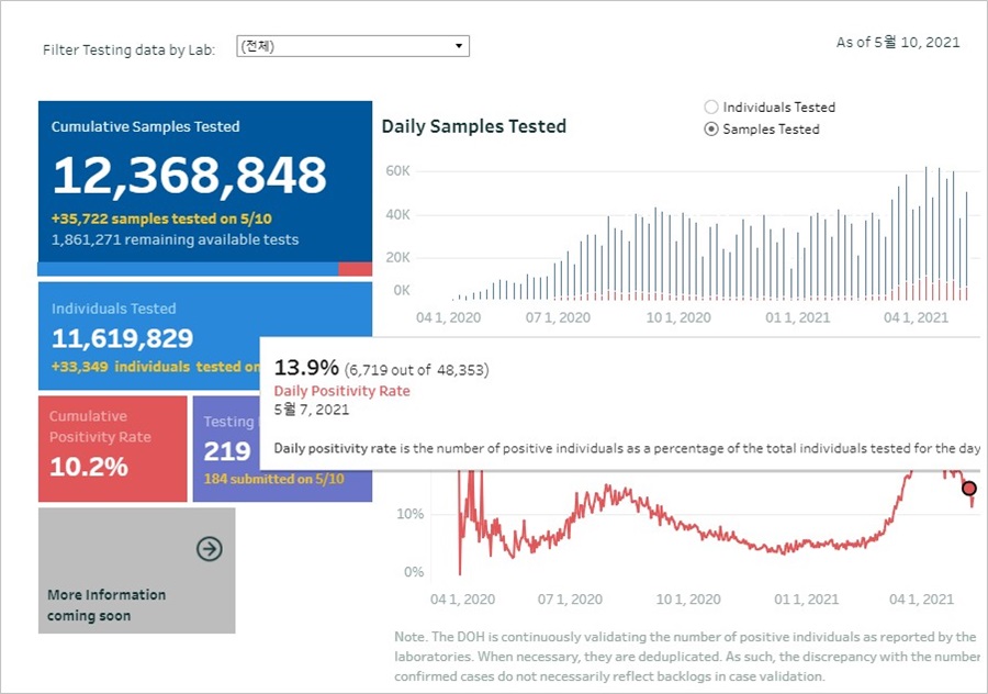 - 누적검사수(cumulative sample tested) : 12,368,848