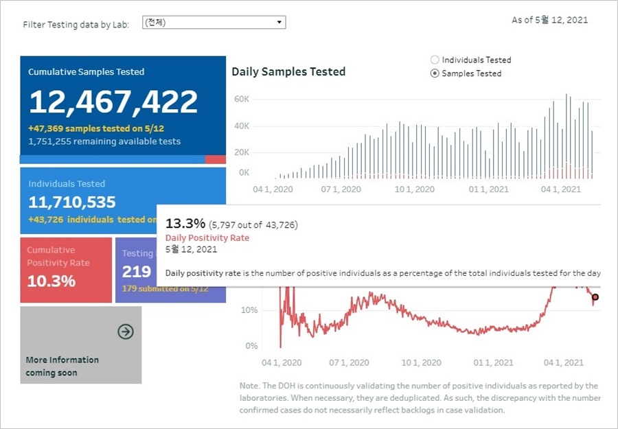 - 누적검사수(cumulative sample tested) : 12,467,422