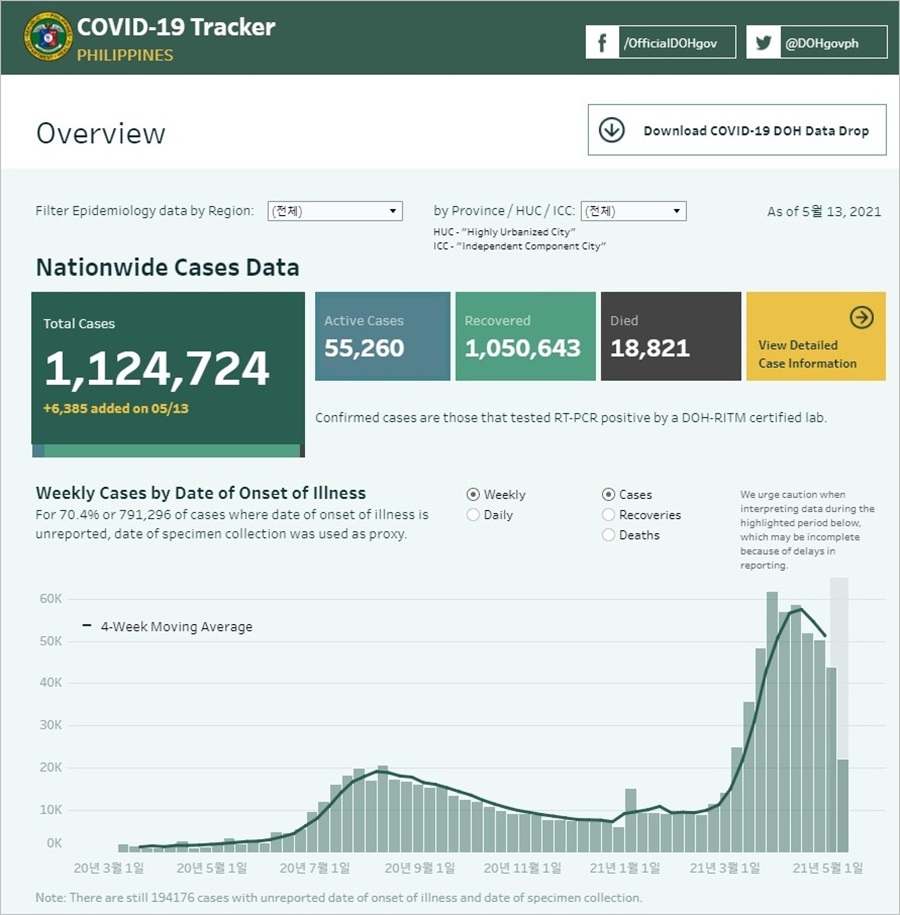 ■ 필리핀 코로나19 발생 현황 (2021년 5월 13일 현재)
