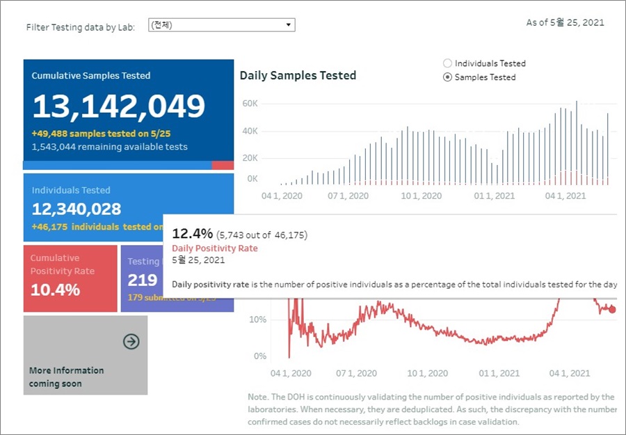 - 누적검사수(cumulative sample tested) : 13,142,049