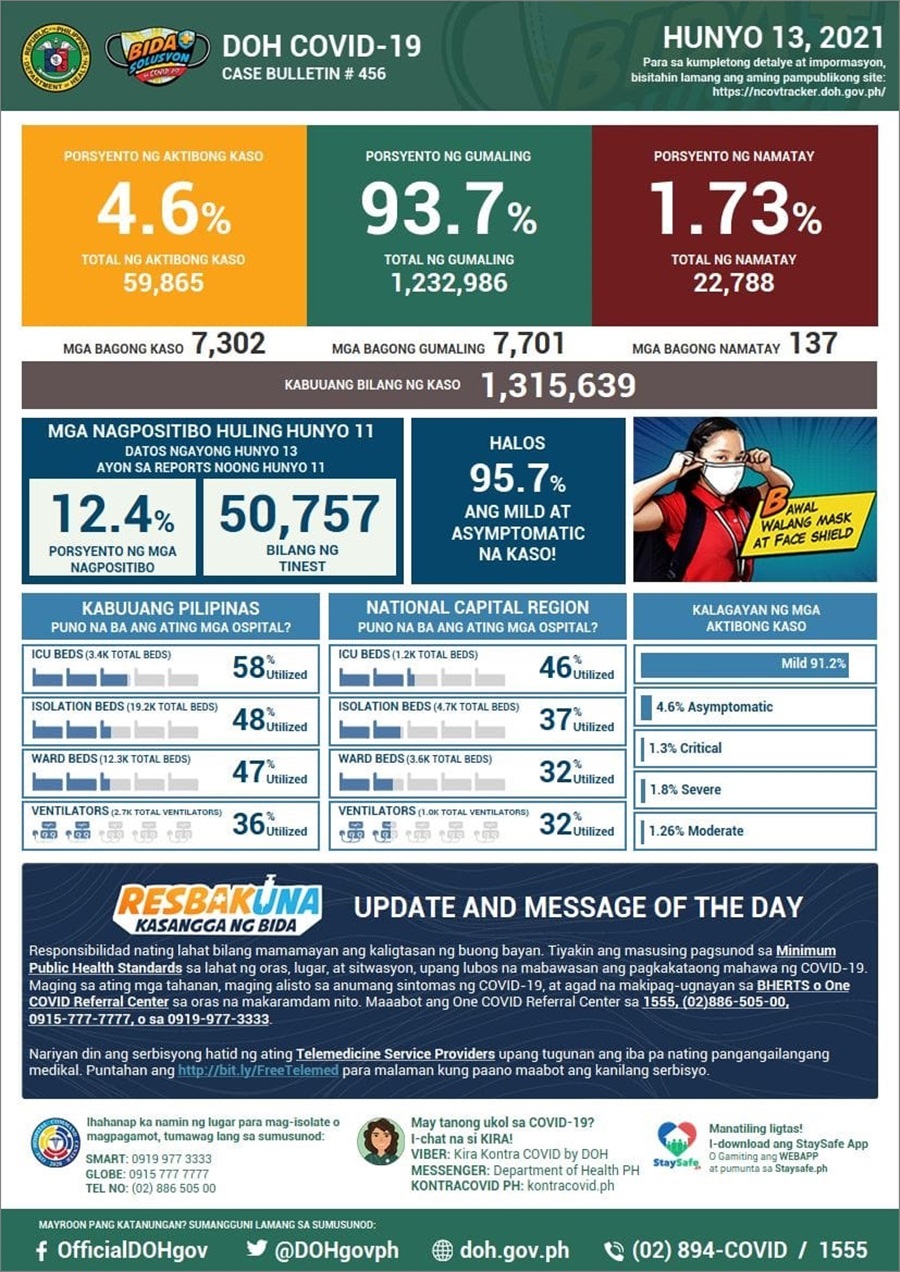 ※ 필리핀 보건부에서 2021년 6월 13일에 대한 지역별 현황을 발표하지 않음