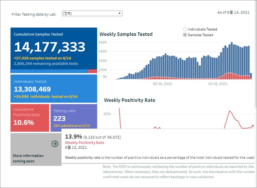 - 누적검사수(cumulative sample tested) : 14,177,333