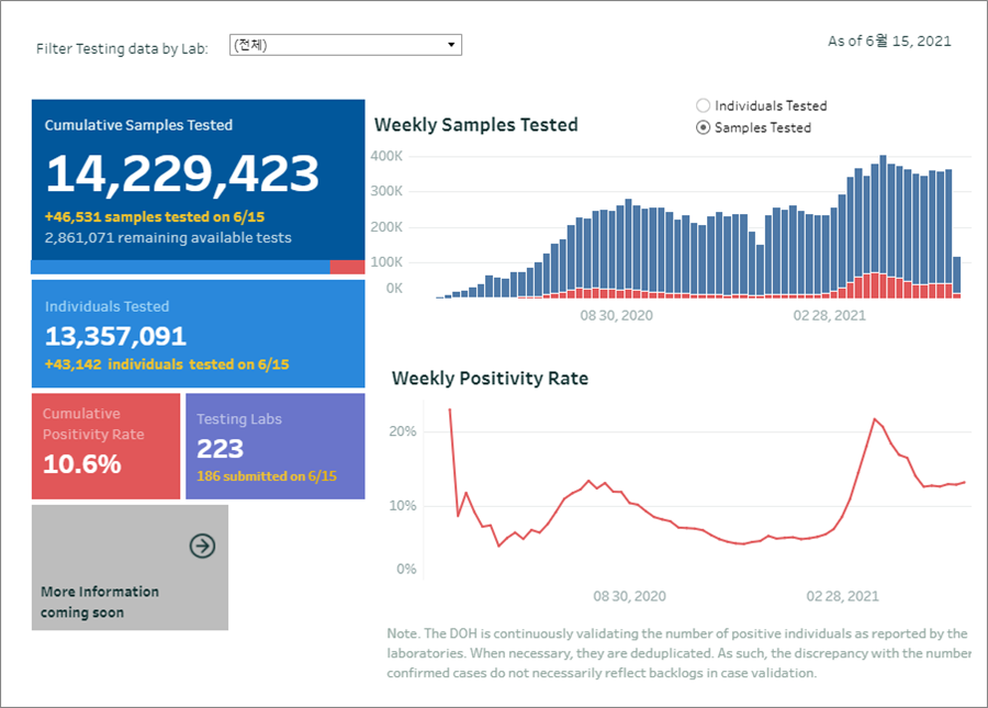 - 누적검사수(cumulative sample tested) : 14,229,423