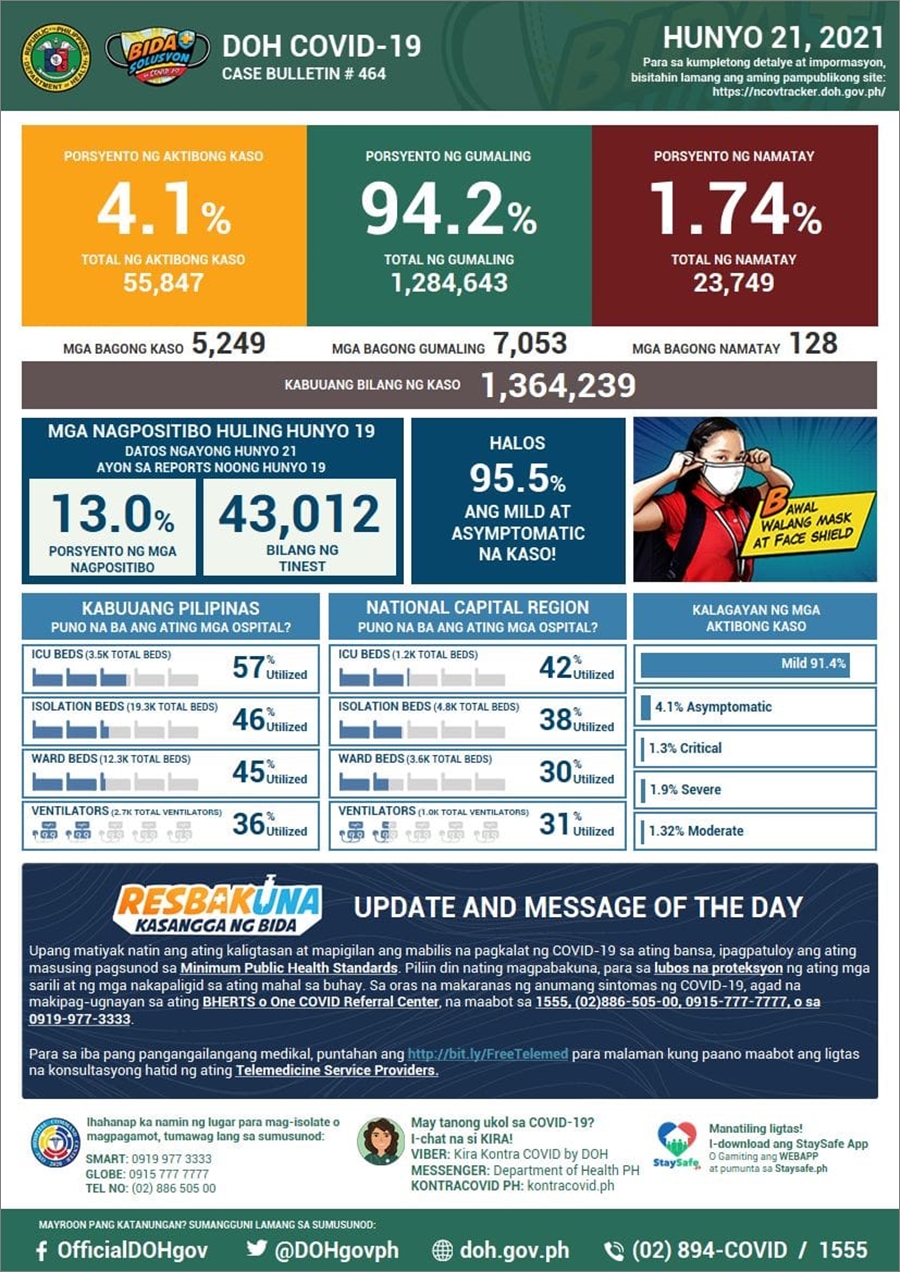 ※ 필리핀 보건부에서 2021년 6월 21일에 대한 지역별 현황을 발표하지 않음