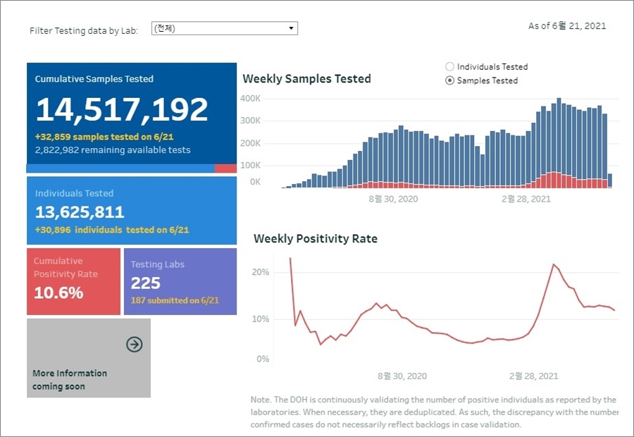 - 누적검사수(cumulative sample tested) : 14,517,192