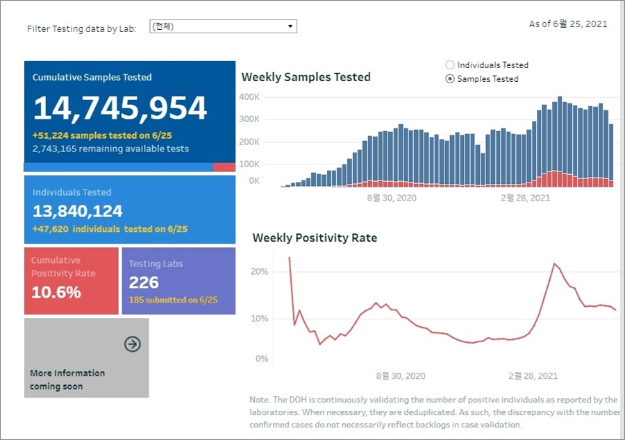 - 누적검사수(cumulative sample tested) : 14,745,954