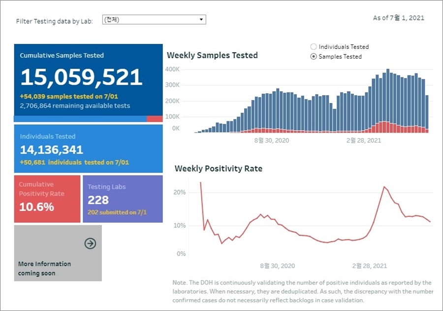 - 누적검사수(cumulative sample tested) : 15,059,521