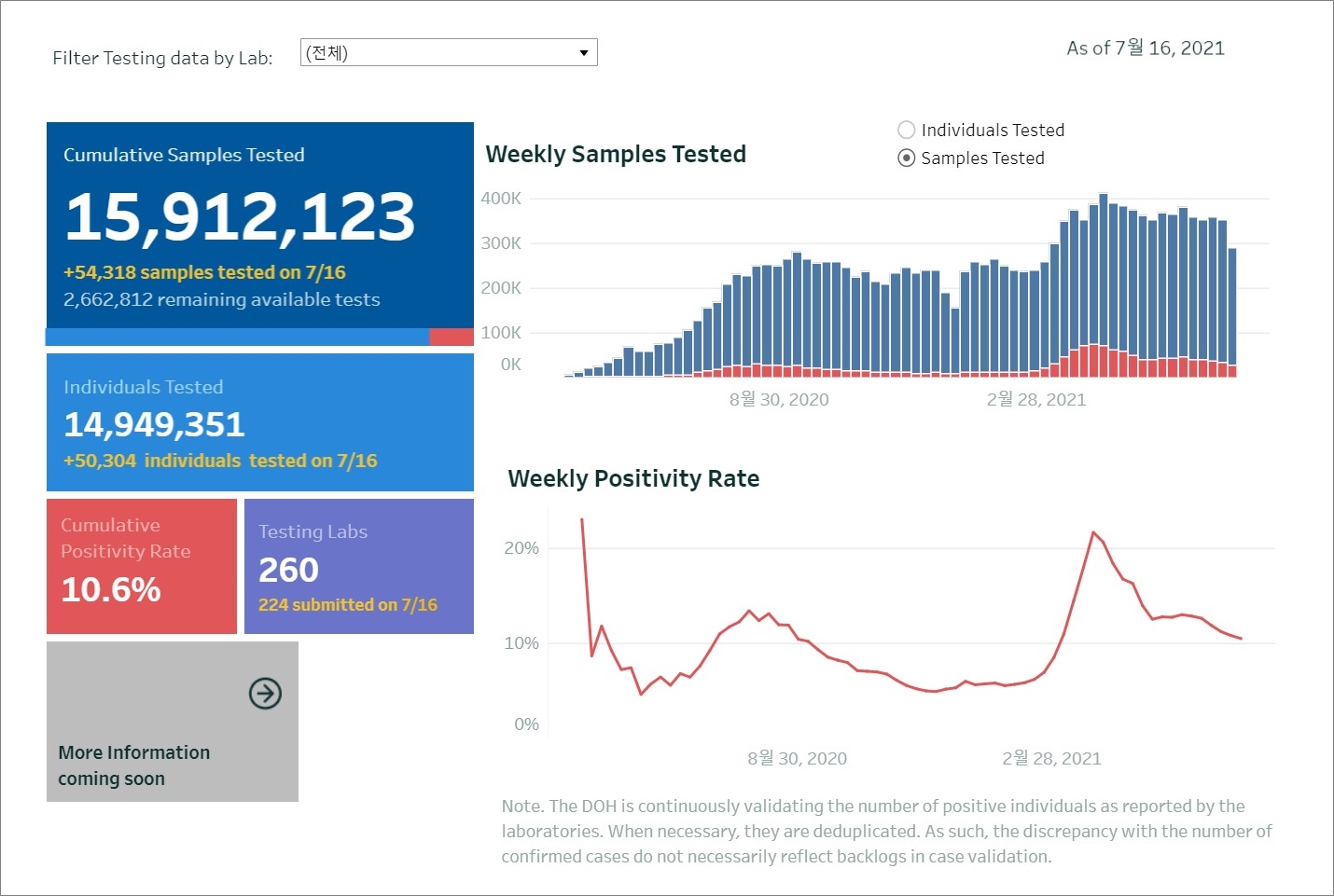- 누적검사수(cumulative sample tested) : 15,912,123
