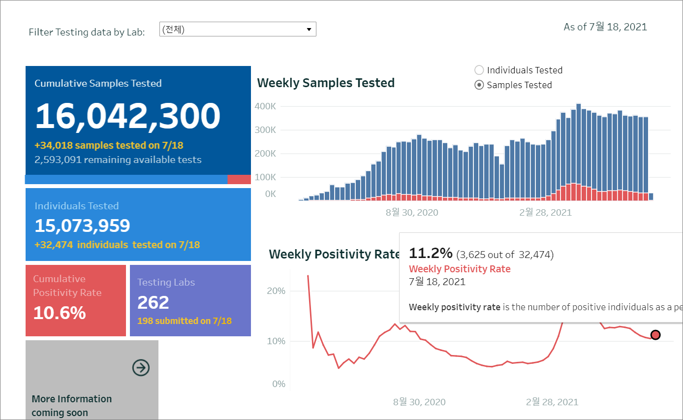 - 누적검사수(cumulative sample tested) : 16,042,300
