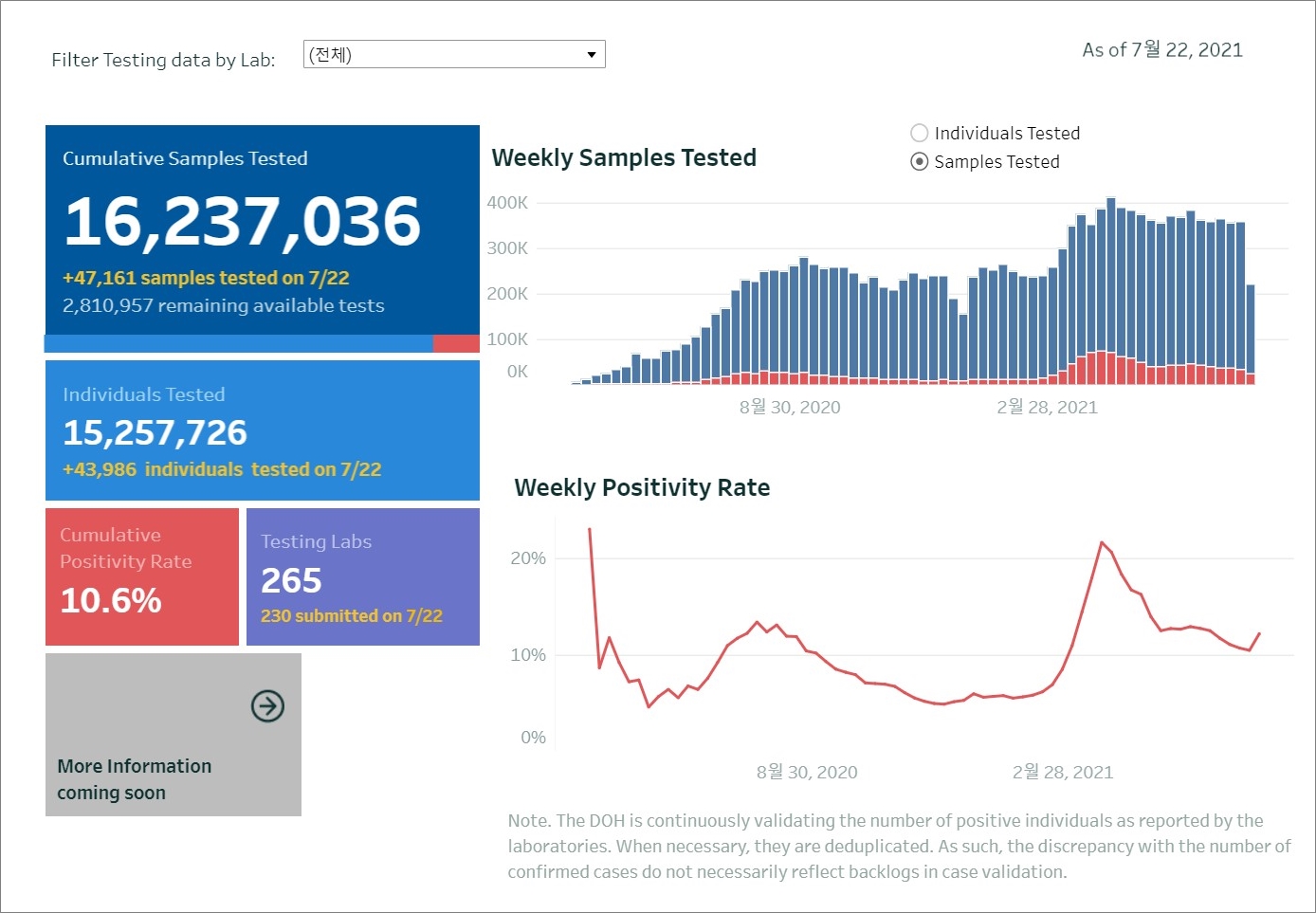 - 누적검사수(cumulative sample tested) : 16,237,036
