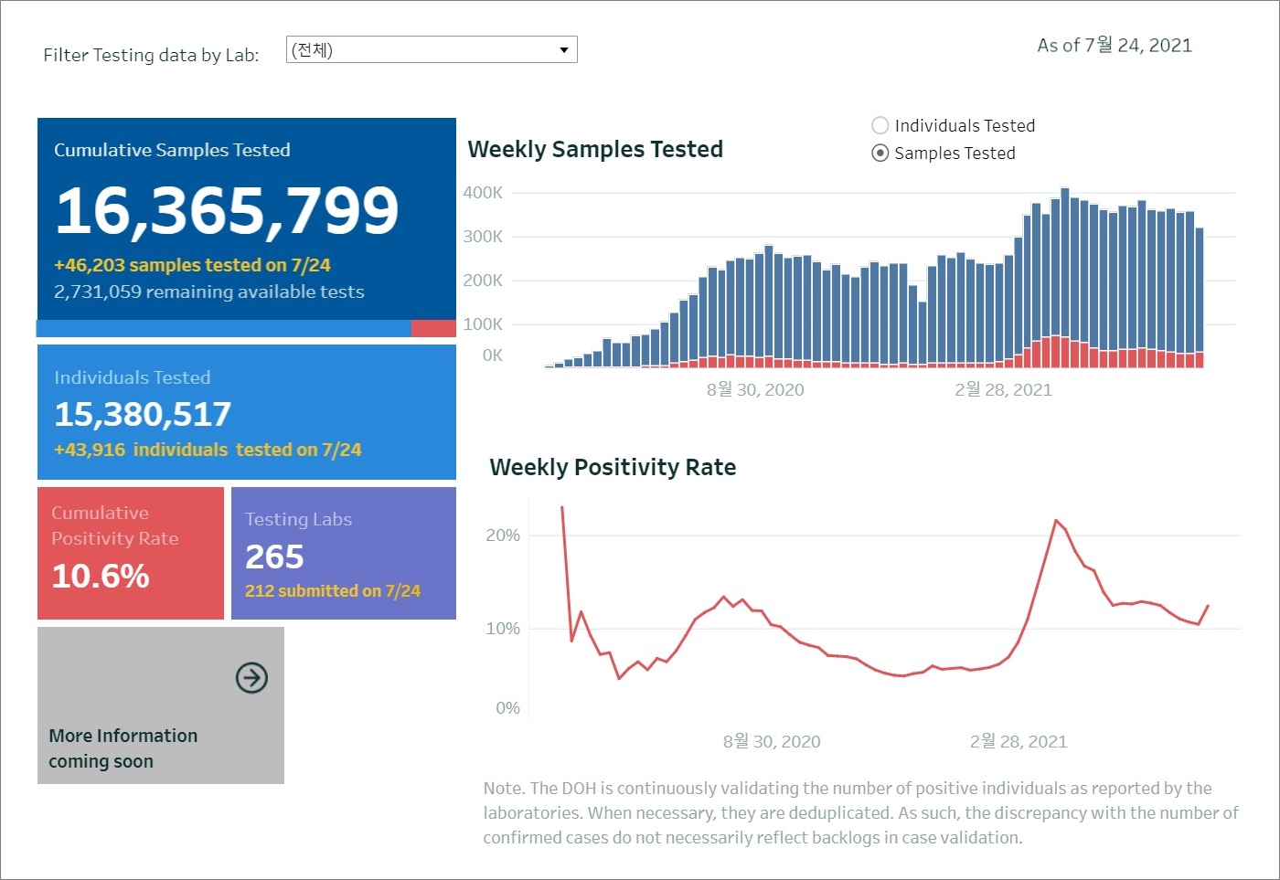 - 누적검사수(cumulative sample tested) : 16,365,799
