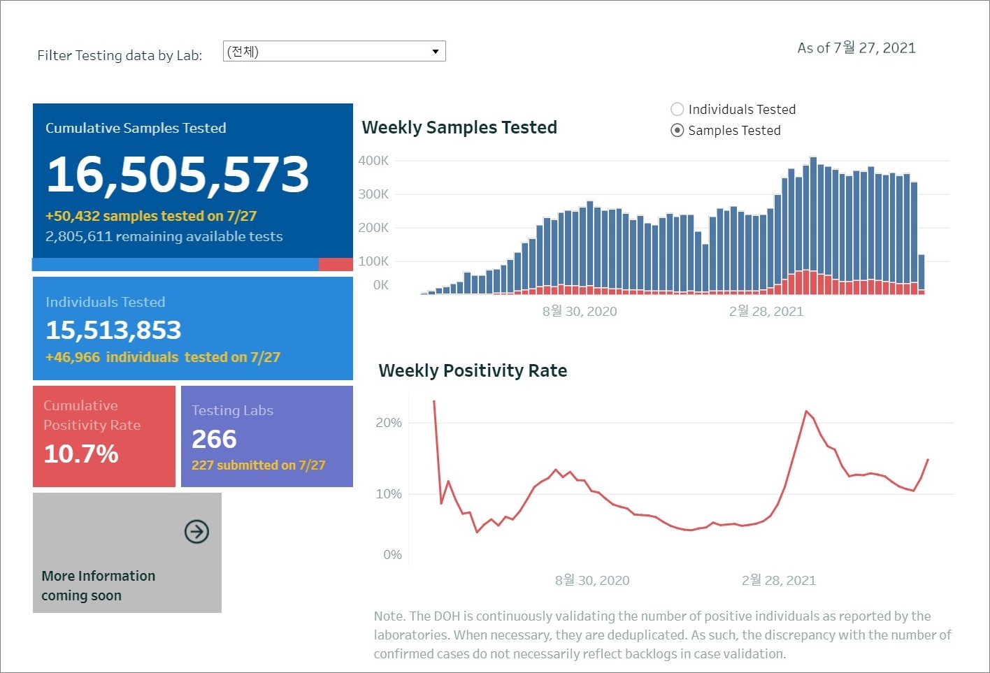 - 누적검사수(cumulative sample tested) : 16,505,573
