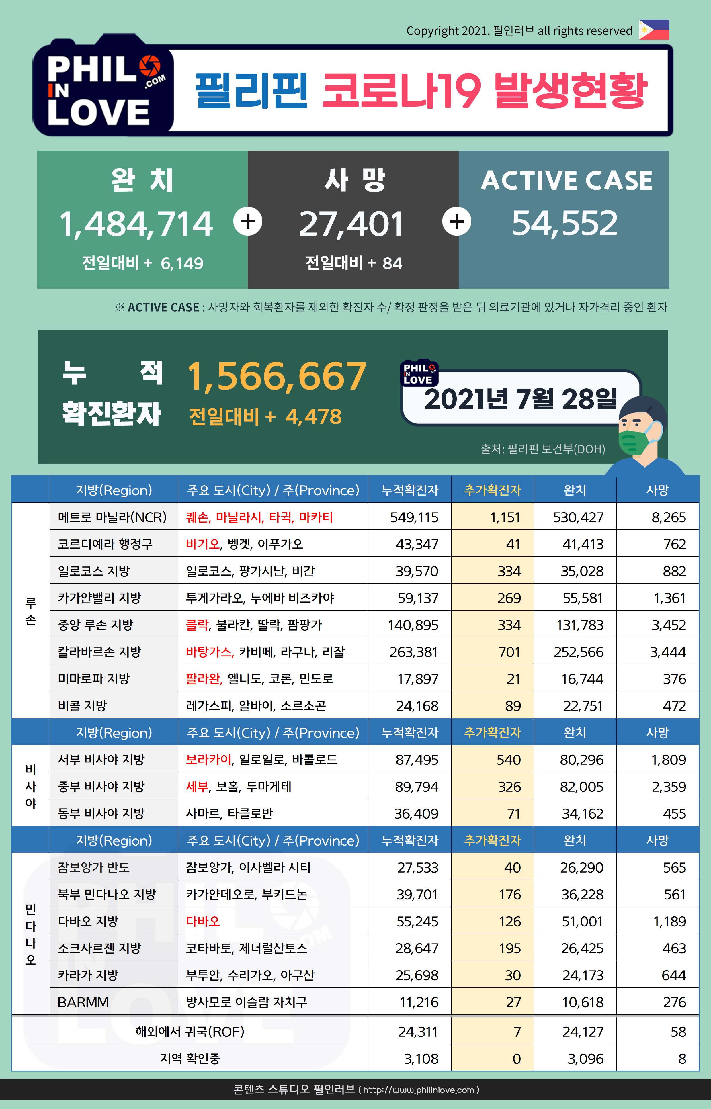 ■ 필리핀 코로나19 발생 현황 (2021년 7월 28일 현재)