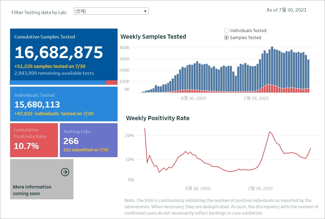- 누적검사수(cumulative sample tested) : 16,682,875